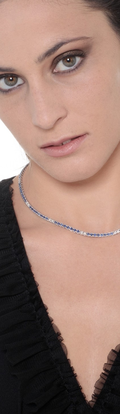 Collier tennis en or blanc 18 carats avec saphirs bleus et diamants