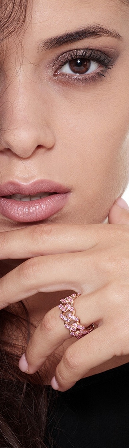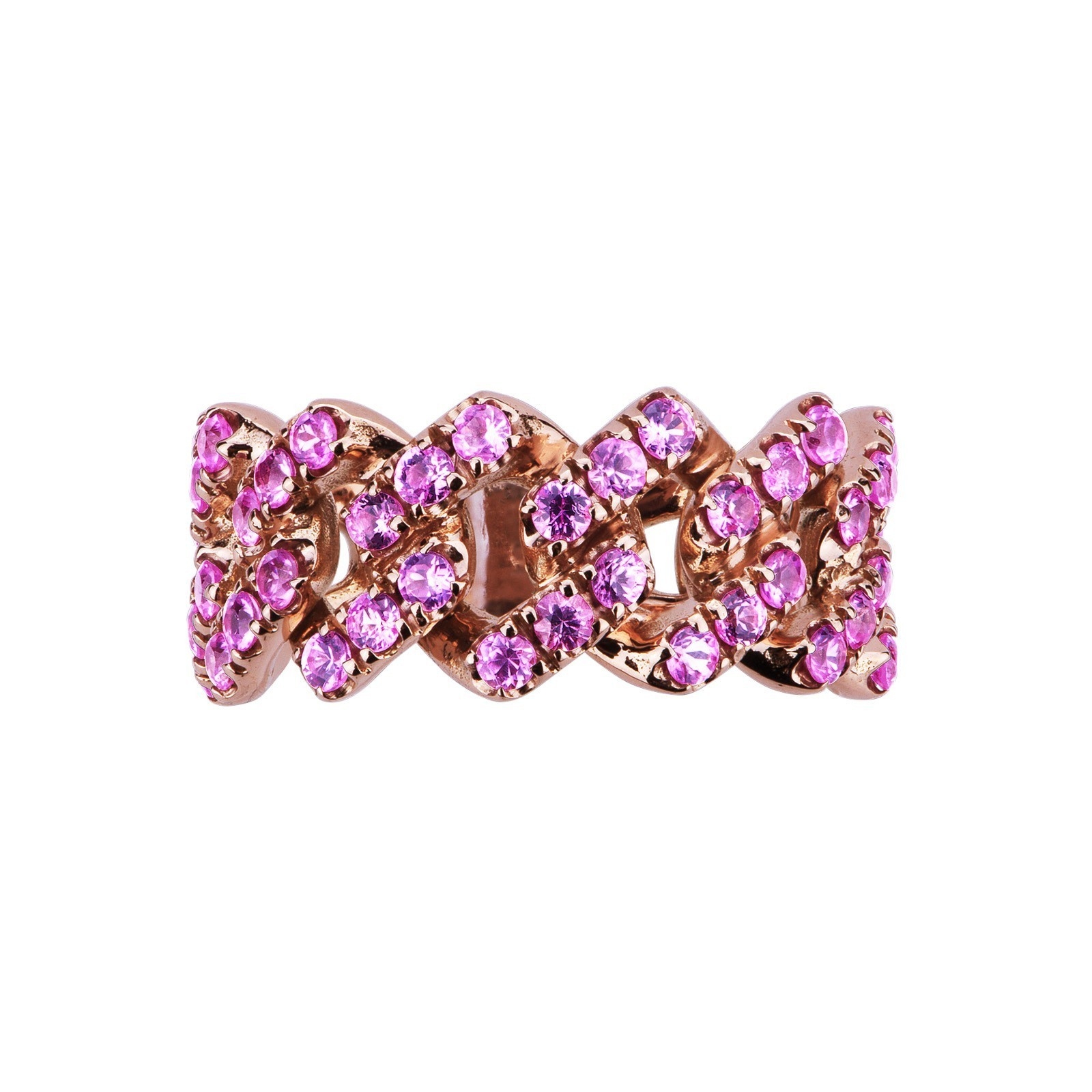 Bague gourmette en or rose 18k sertie de saphirs roses