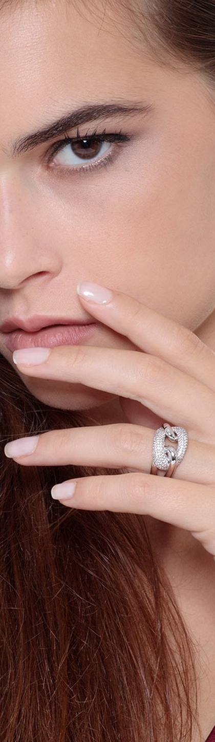 Bague Groumette en or blanc 18k entrelacé et zircons