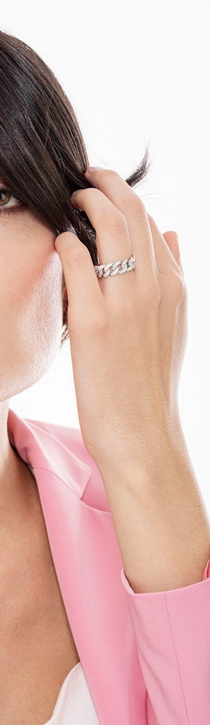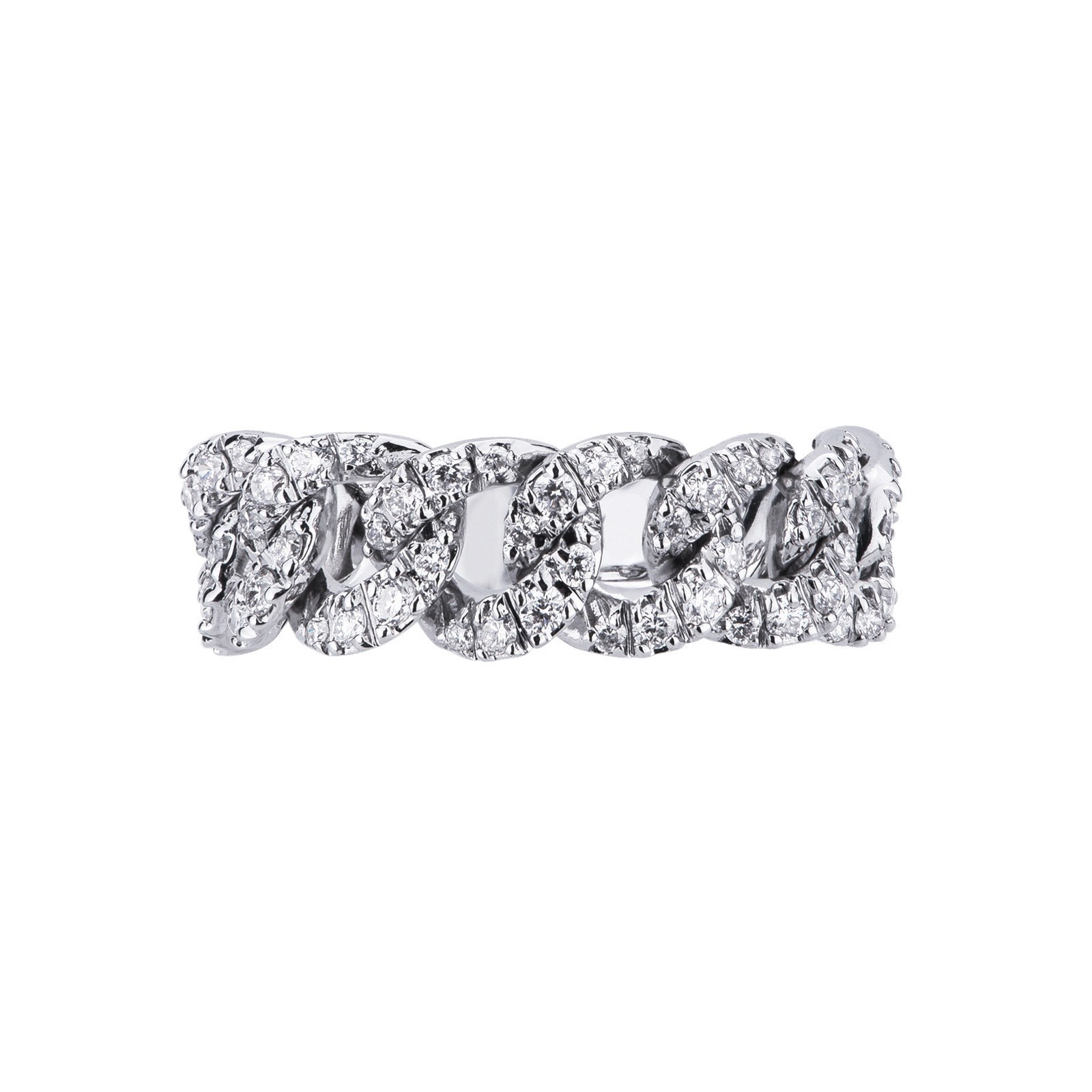 Bague souple style gourmette en or blanc 18k avec diamants