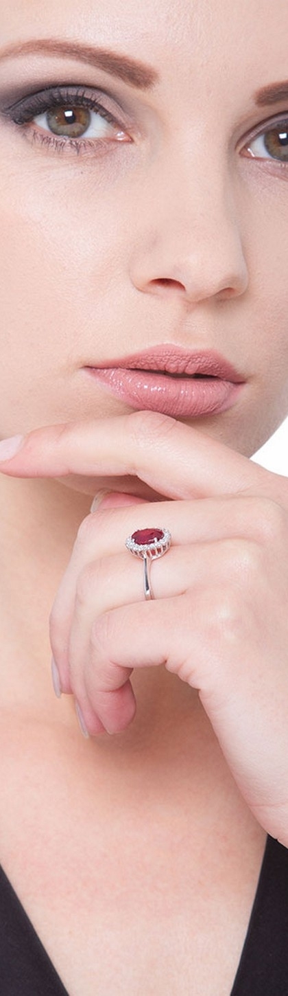 Bague de fiançailles en or blanc 18k avec rubi et diamants
