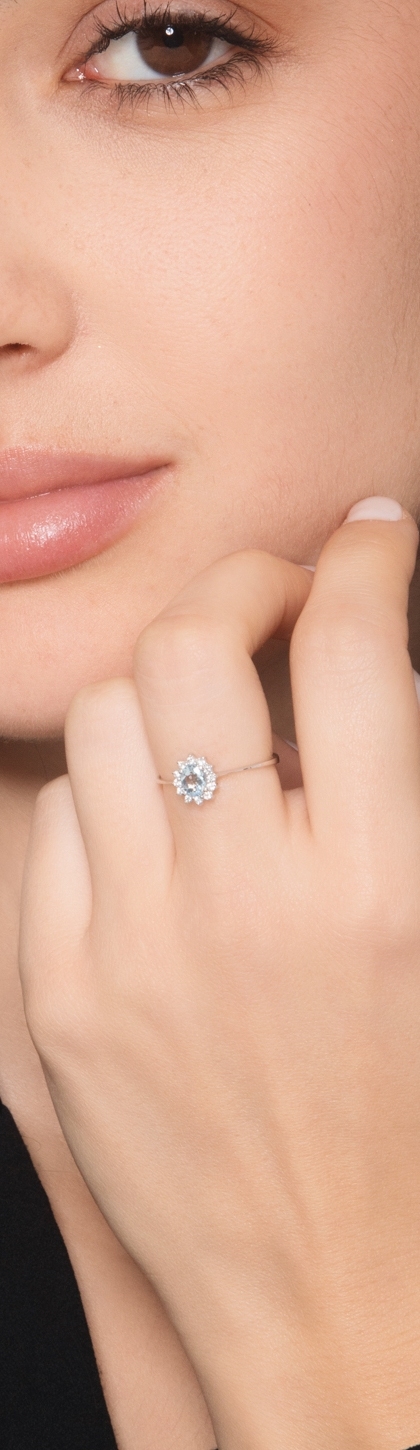 Bague en or blanc 18k avec aigue-marine 5x4 mm et diamants
