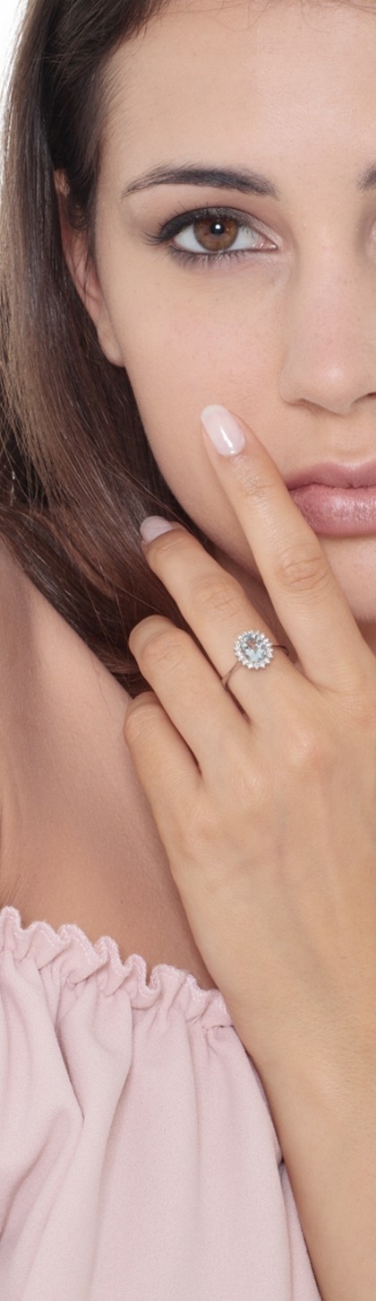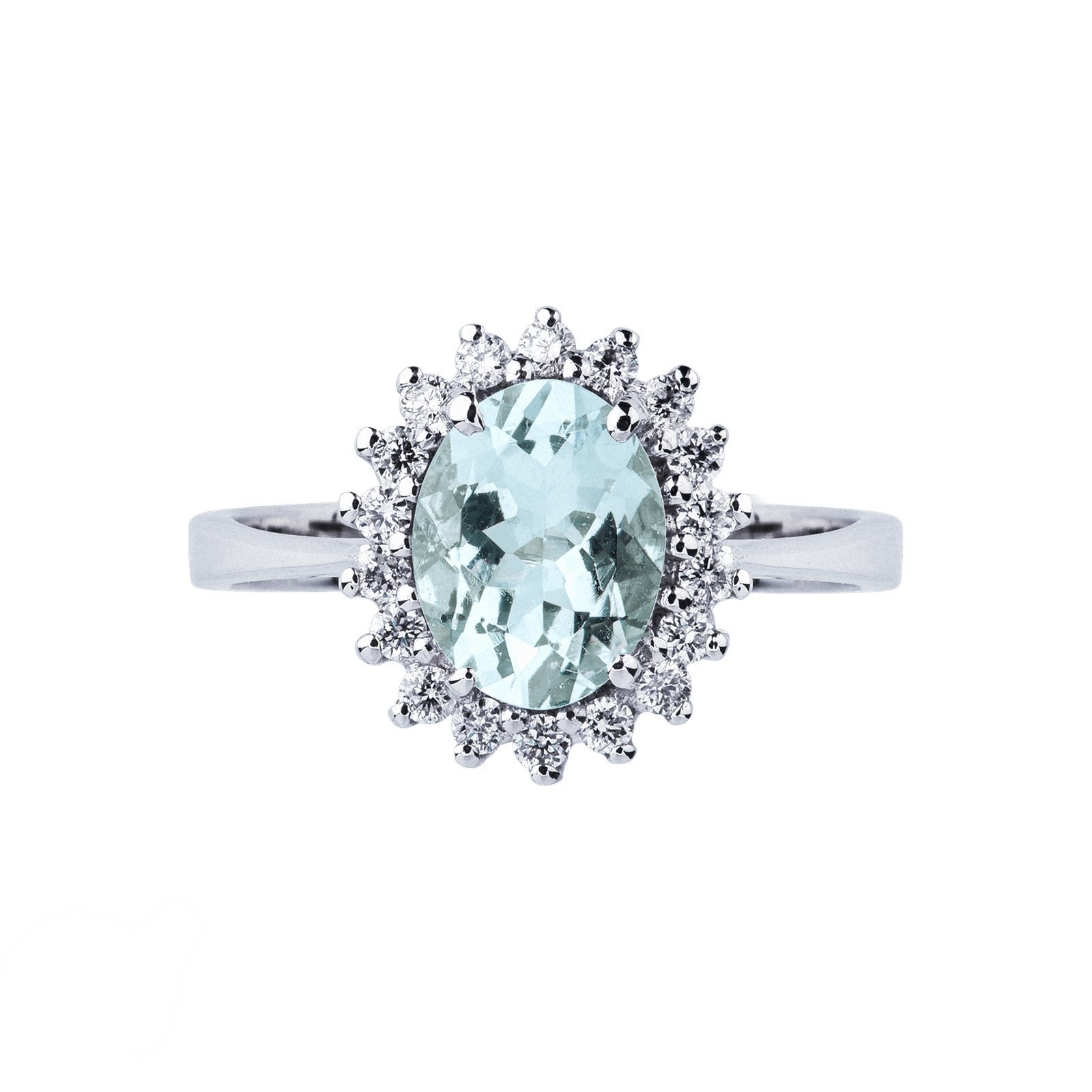 Bague en or blanc 18k avec aigue-marine ovale et diamants