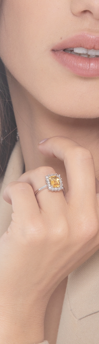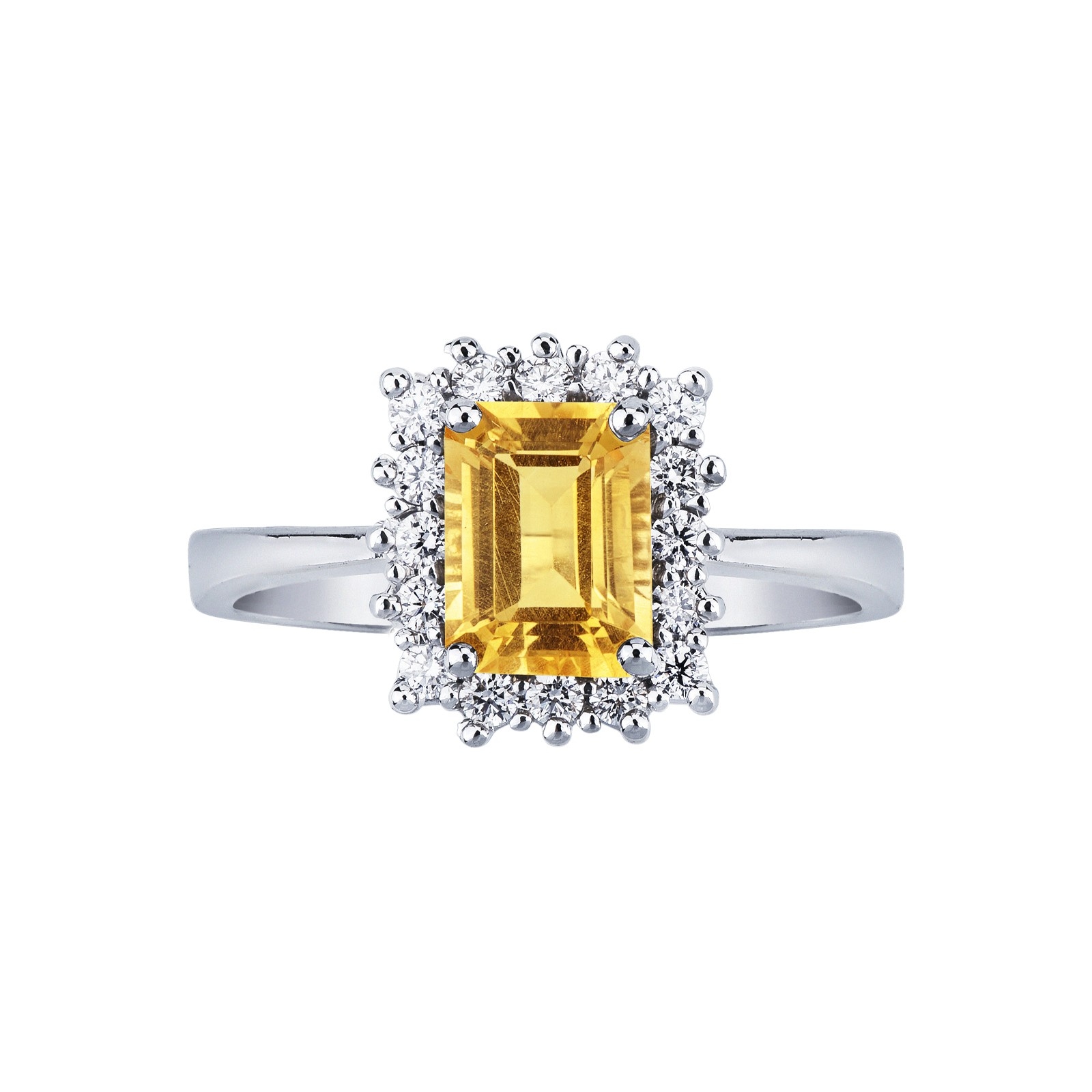 Bague en or blanc 18k avec citrine rectangulaire et diamants