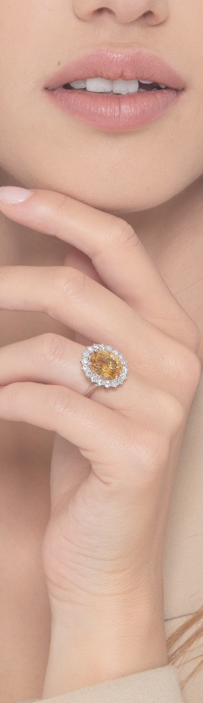 Bague en or blanc 750 avec citrine ovale et diamants