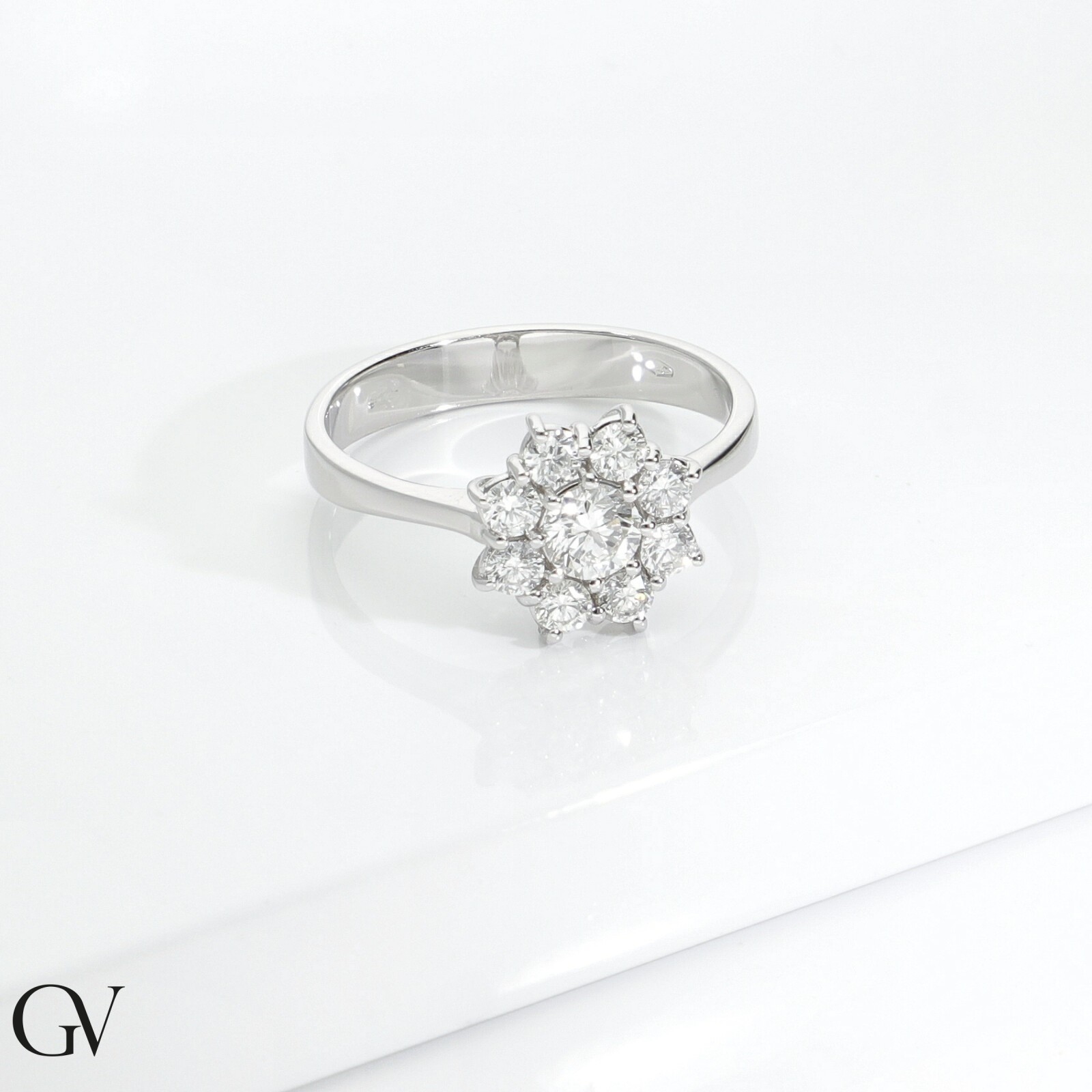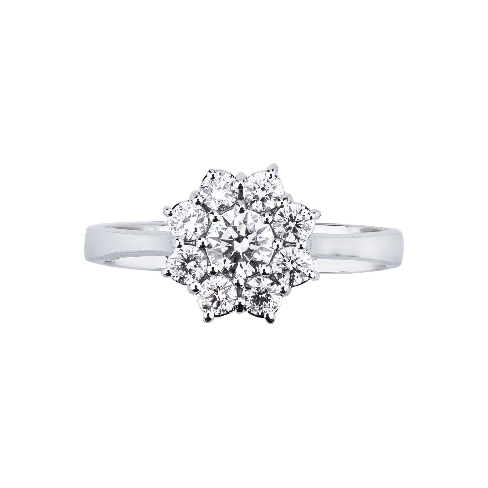 Bague fleur halo en forme avec diamant central de CT0.30