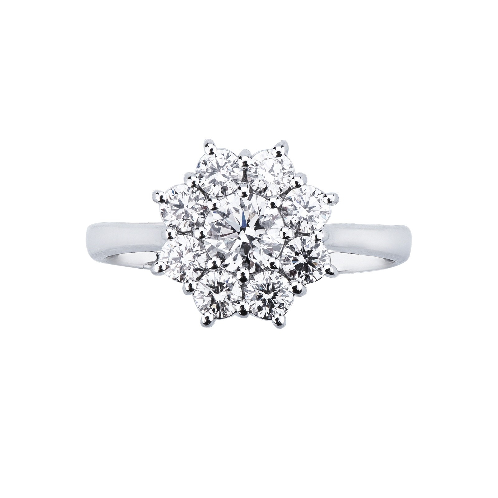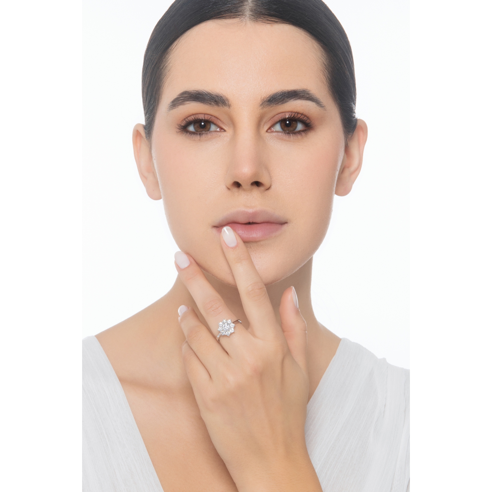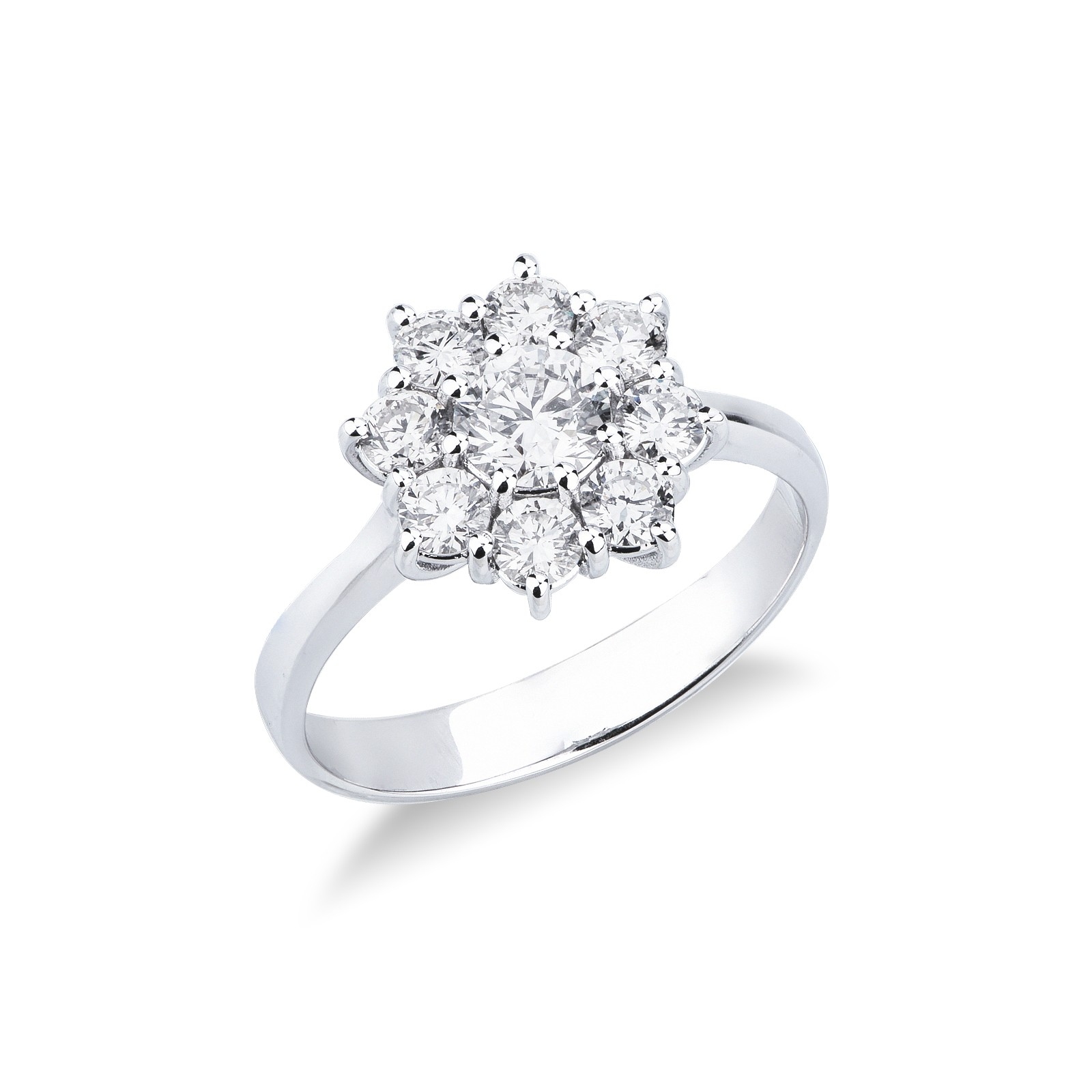 Bague halo en forme de fleur avec diamant central 0.50 ct or blanc 18k