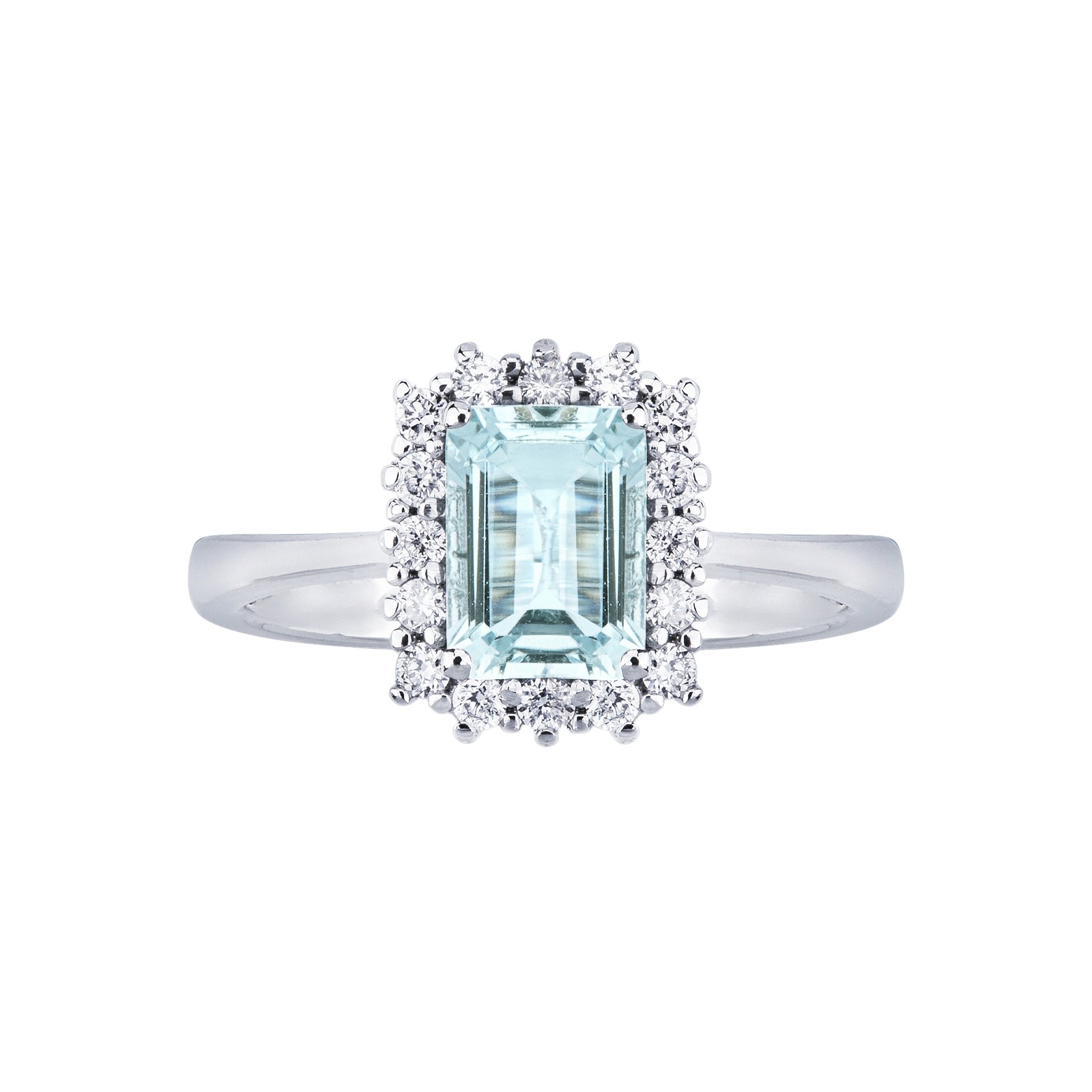 Bague halo en or blanc 18 carats avec aquamarine
