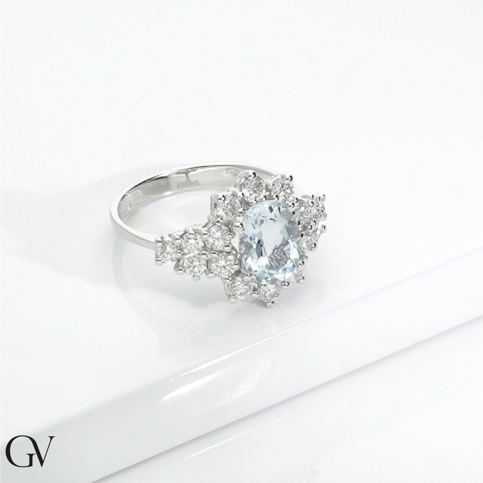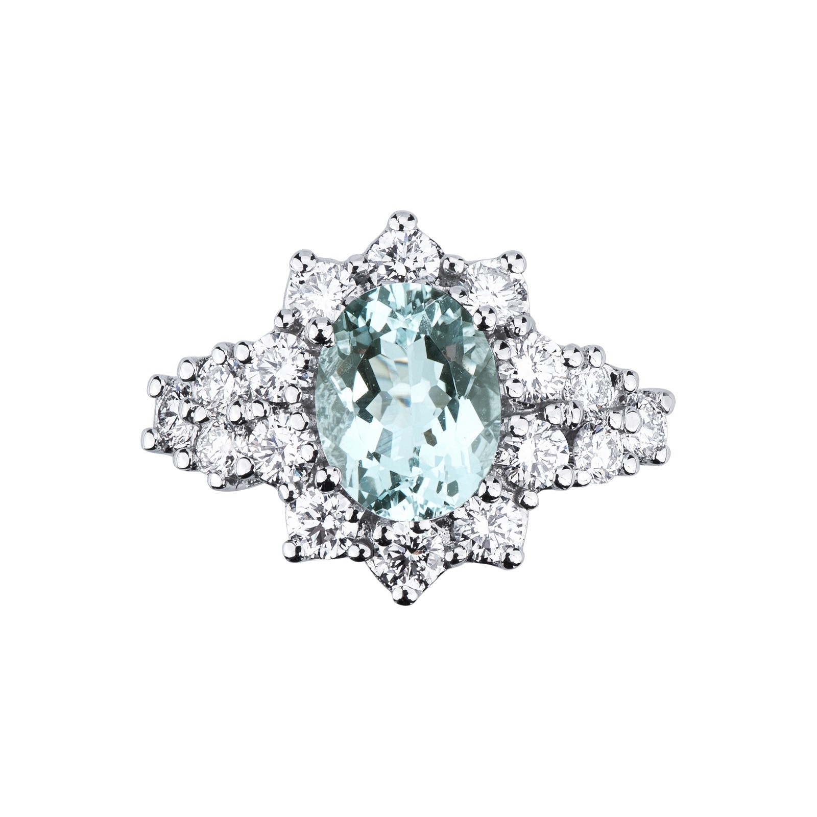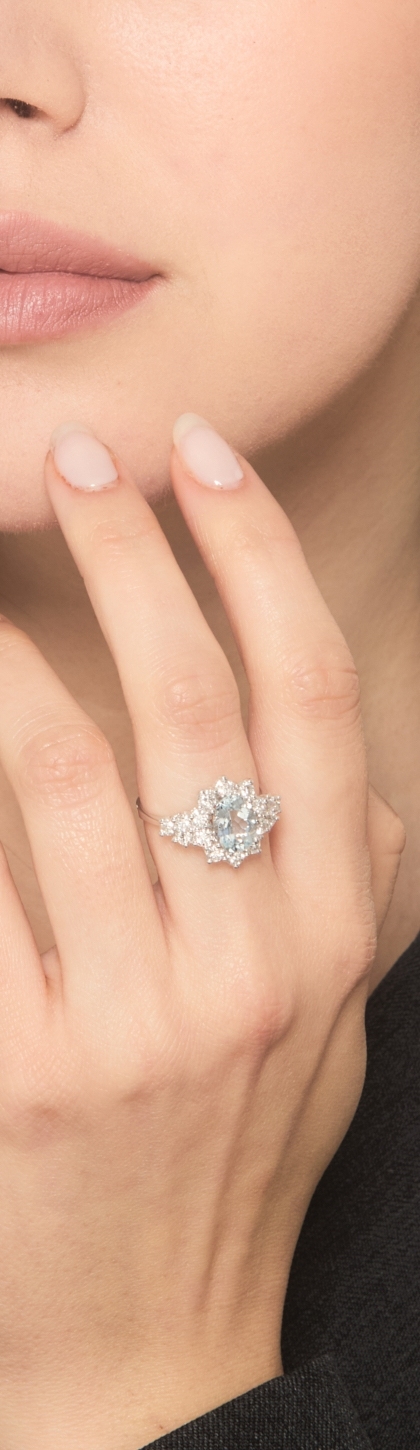 Bague halo en or blanc 18k avec aigue-marine