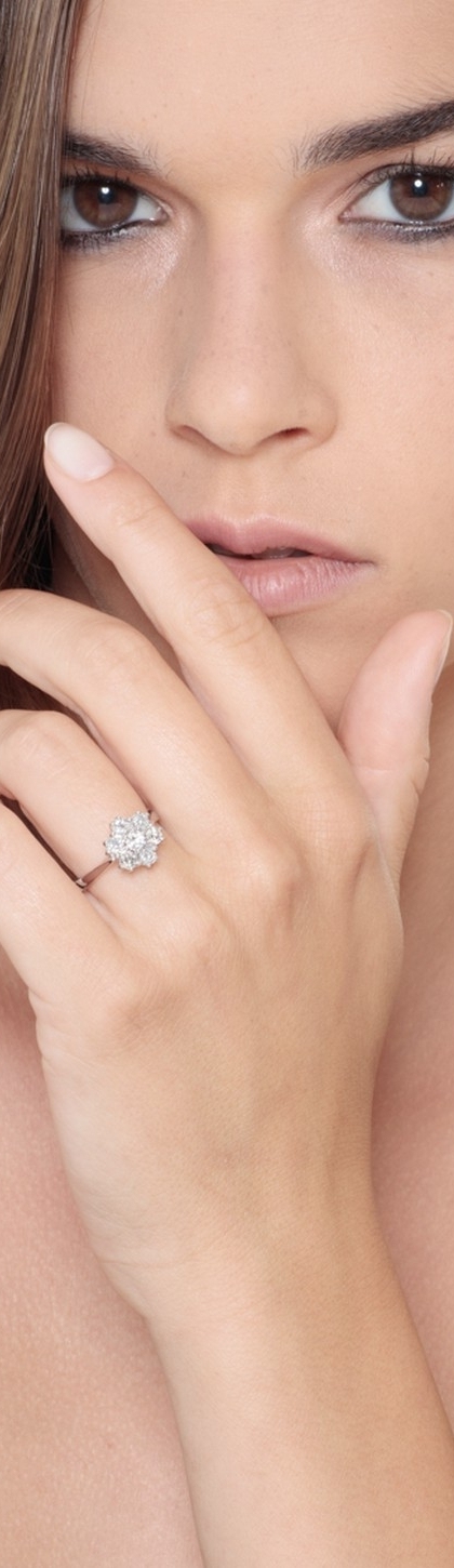 Bague halo en or blanc 18k avec diamant 0,20 ct