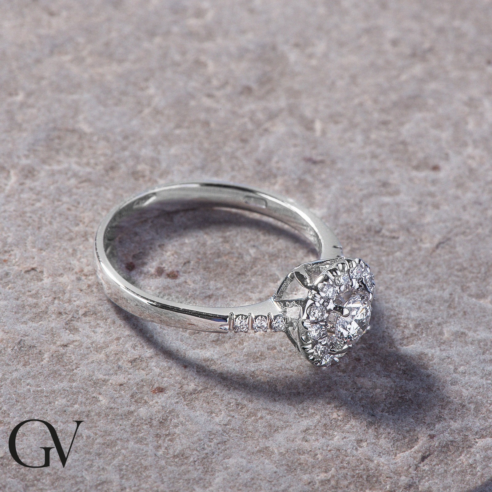 Bague halo en or blanc 18k avec diamants