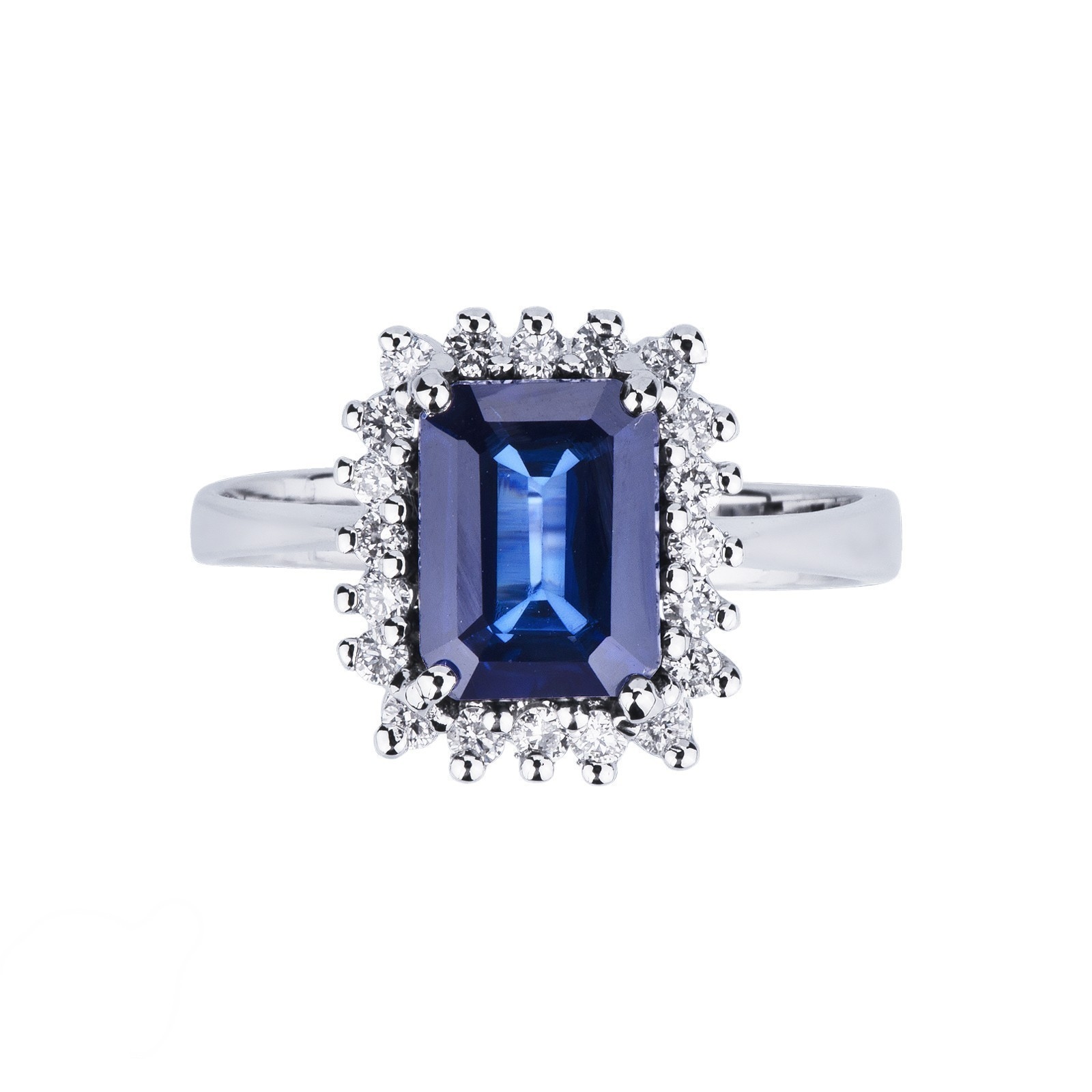 Bague Halo en or blanc 18k avec saphir et diamants