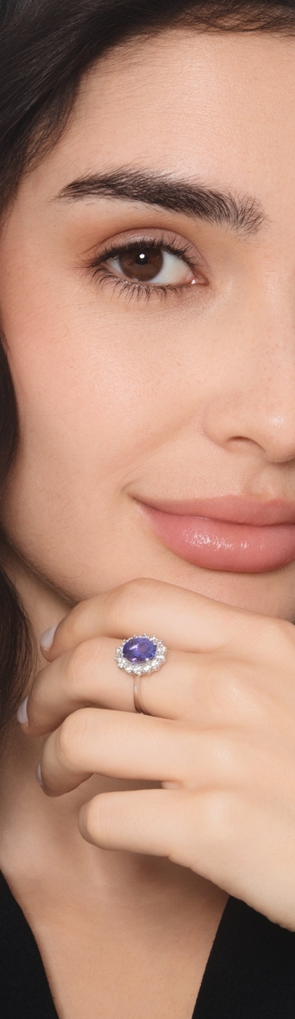 Bague halo en or blanc 18k avec tanzanite et diamants