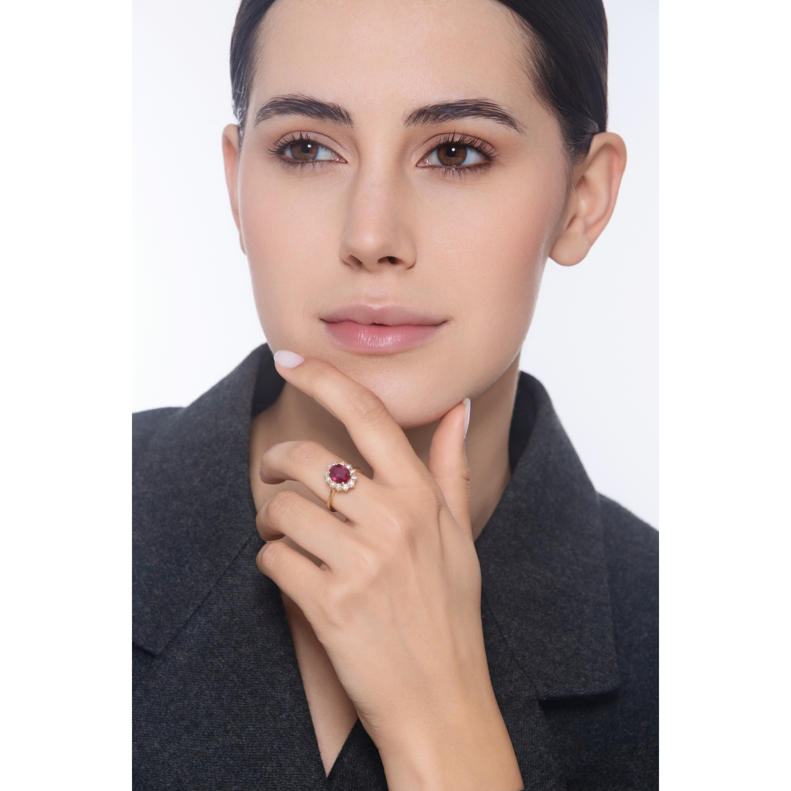 Bague halo femme en or jaune 18 carats avec rubis ovale et diamants