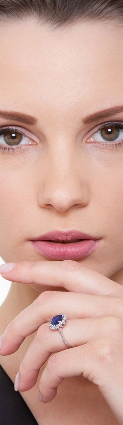 Bague Lady D en or blanc 18k avec saphir bleu et diamants