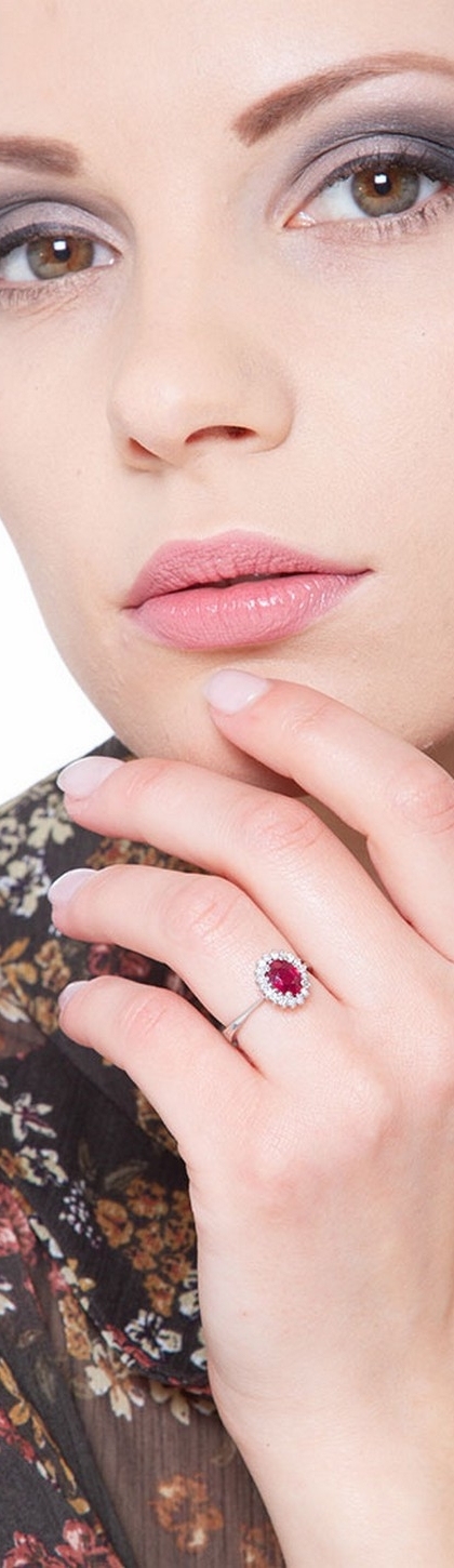 Bague or blanc 18k sertie d'un rubis taille ovale