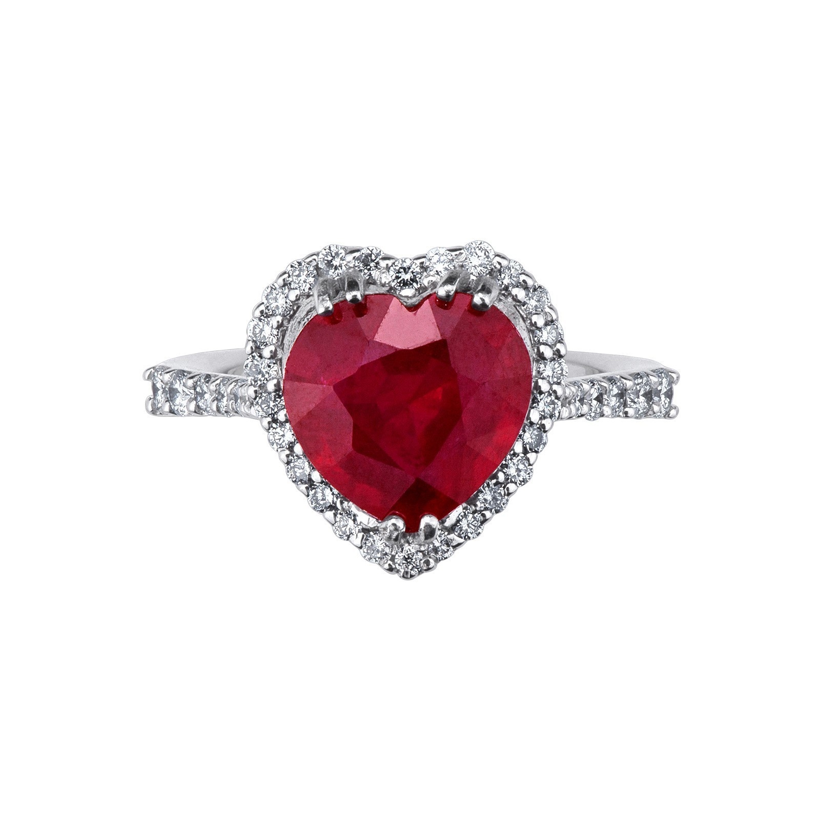 Bague rubis en forme de coeur et diamants en or blanc 18k