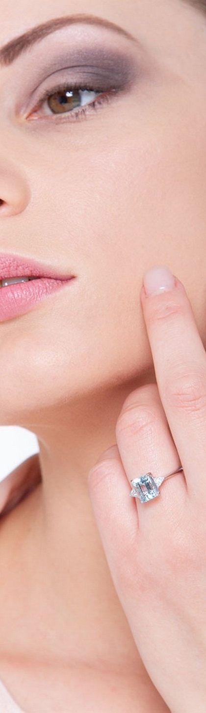 Bague en or blanc 18k avec aigue-marine et diamants