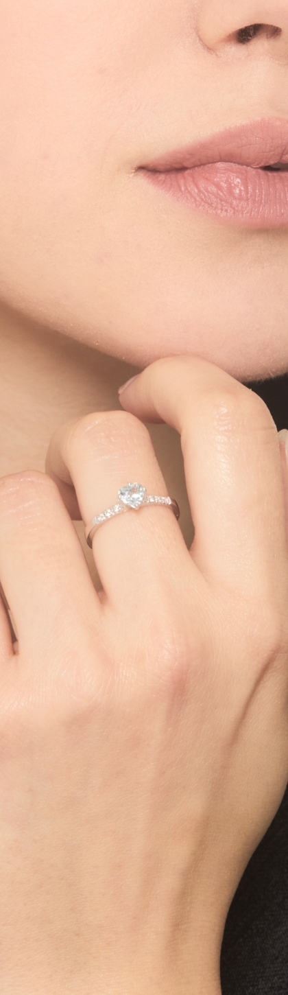 Bague avec aigue-marine en forme de cœur et diamants or 18k
