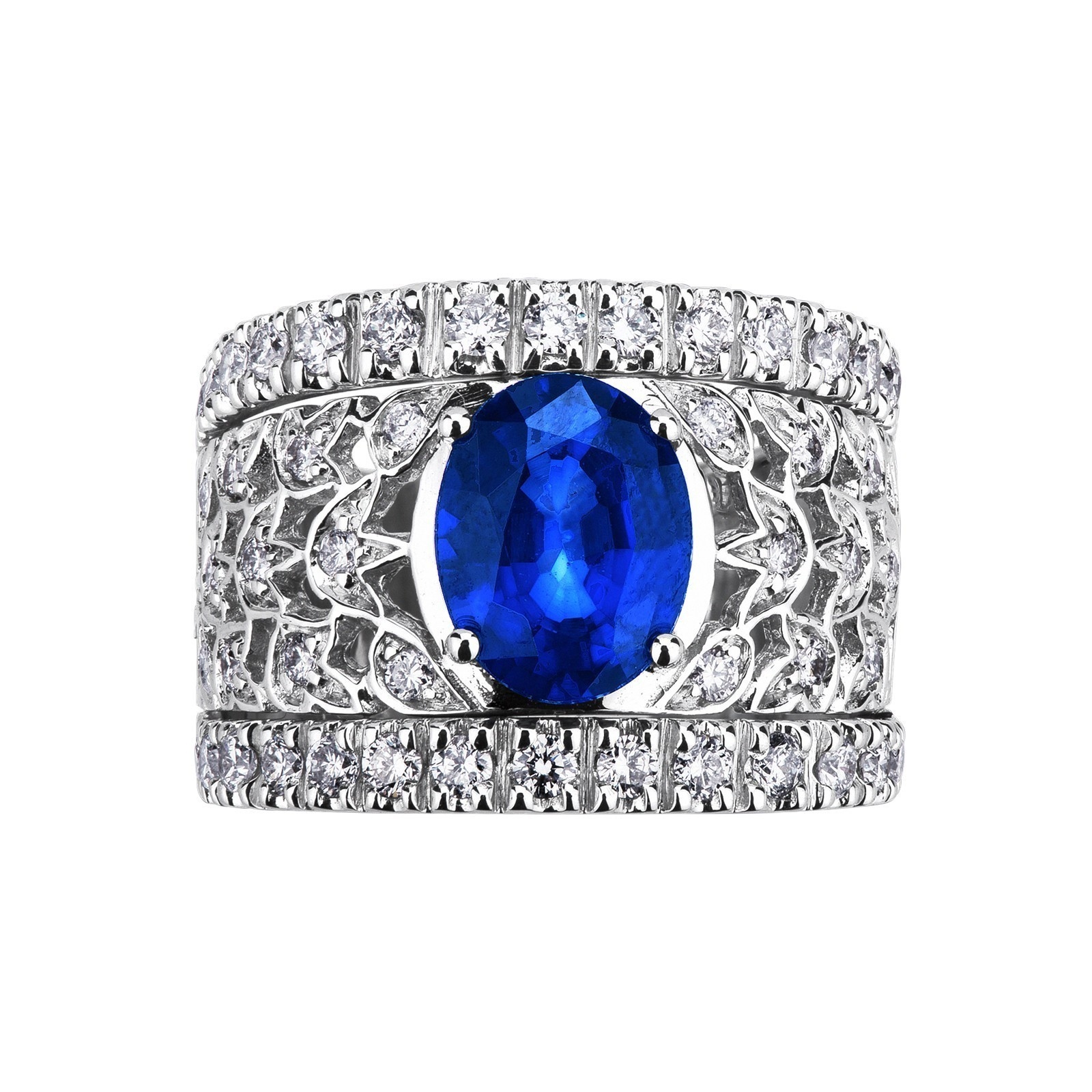Bague bandeau en or blanc 18k avec saphir bleu et diamants