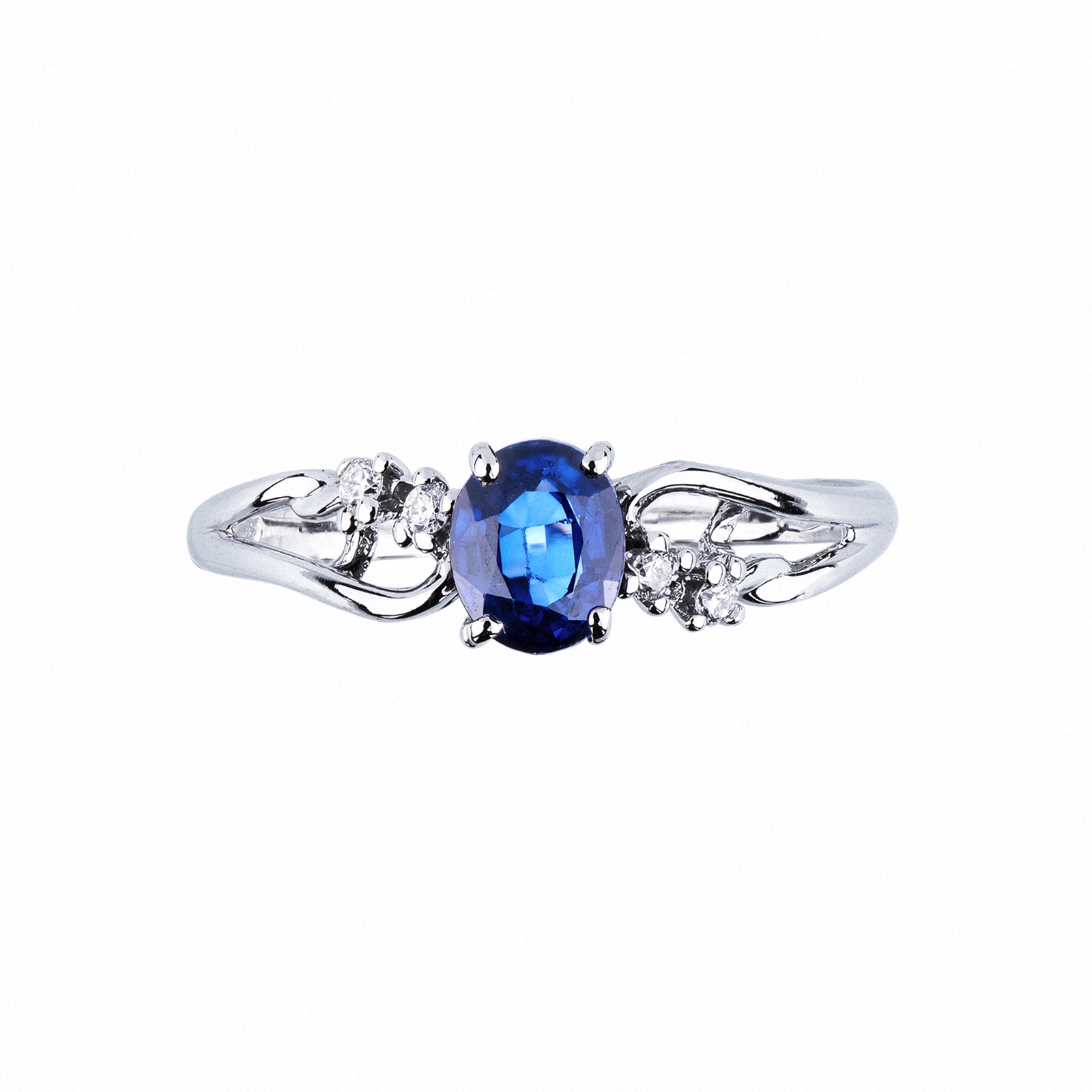 Bague femme or blanc 18k avec saphir bleu ovale et diamants