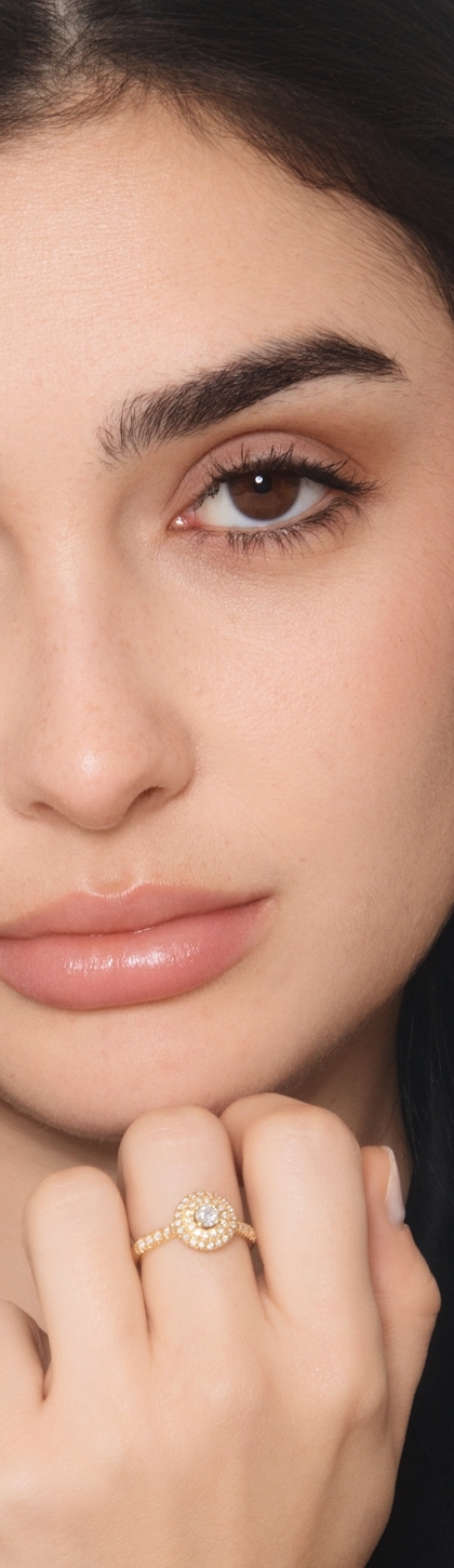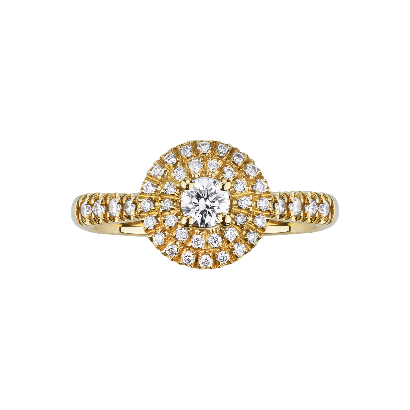 Bague en or jaune 18 carats avec élément central serti de diamants taille brillant, couleur H et pureté VS. Un bijou raffiné et éclatant qui associe la chaleur de l’or à la brillance intemporelle des diamants, idéal pour toutes les occasions spéciales.