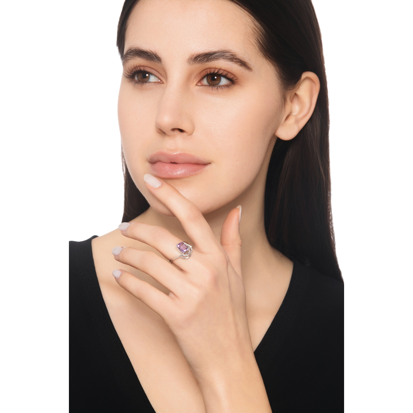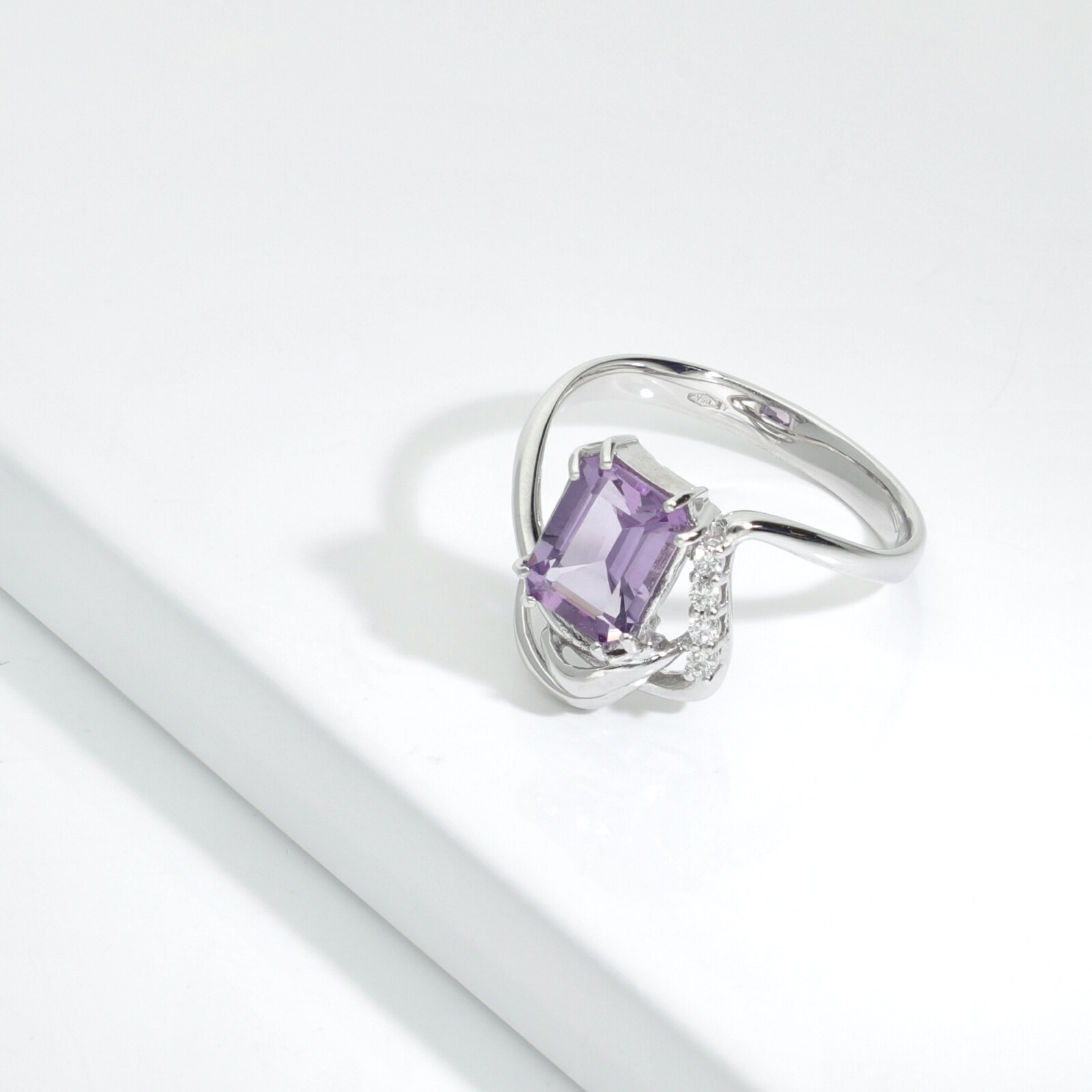 Bague en or blanc 18k avec améthyste centrale et diamants