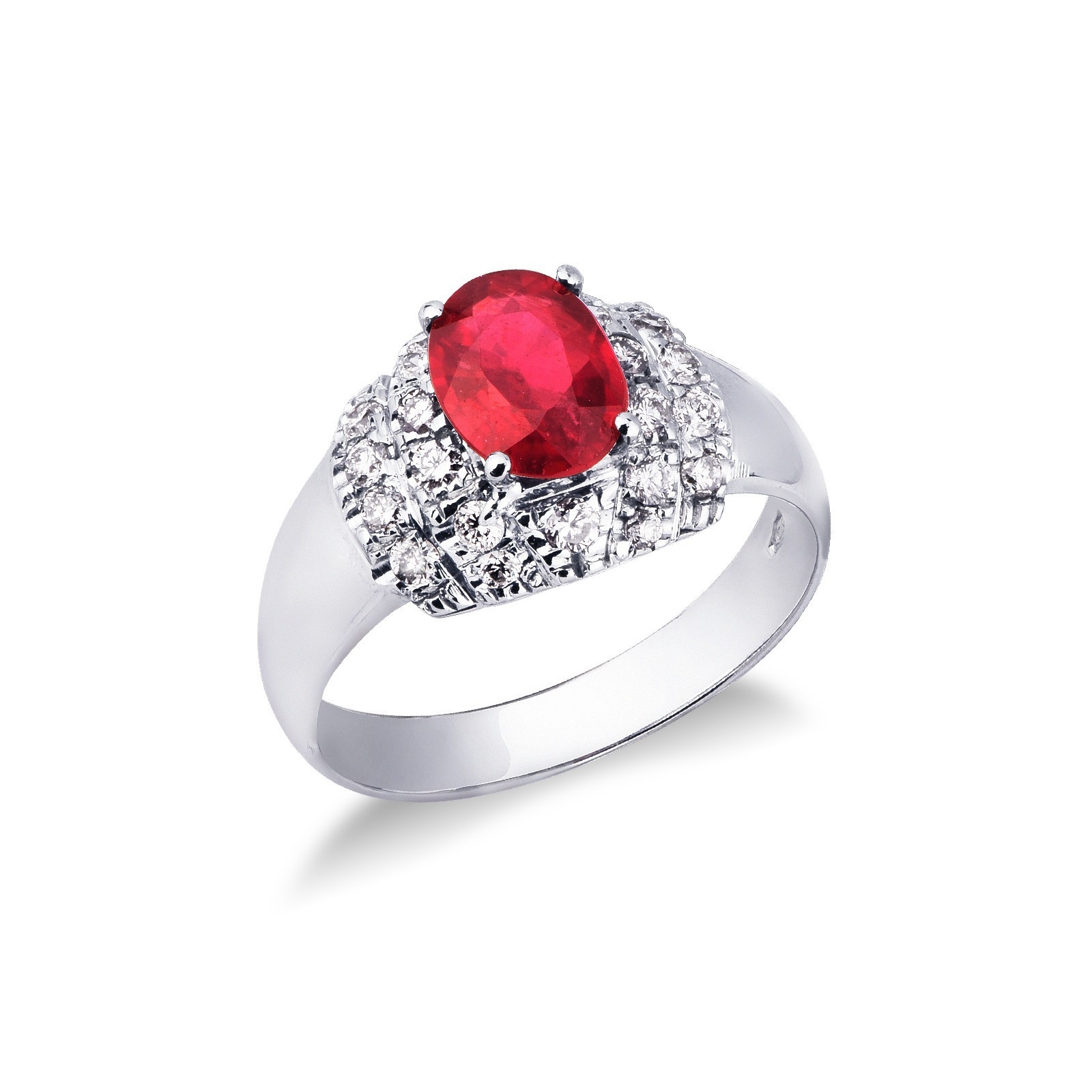 Bague or blanc 18k avec saphir ovale et pavé de diamants