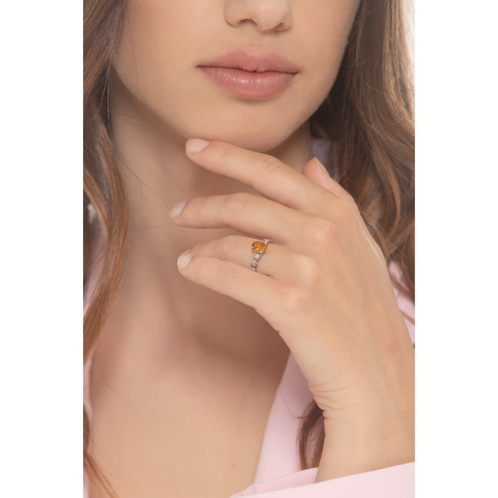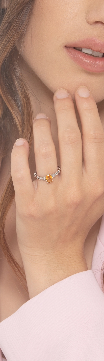 Bague en or blanc 18 carats avec un citrine et 2 diamants