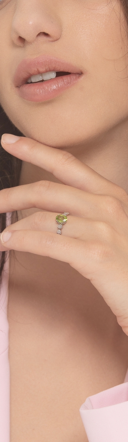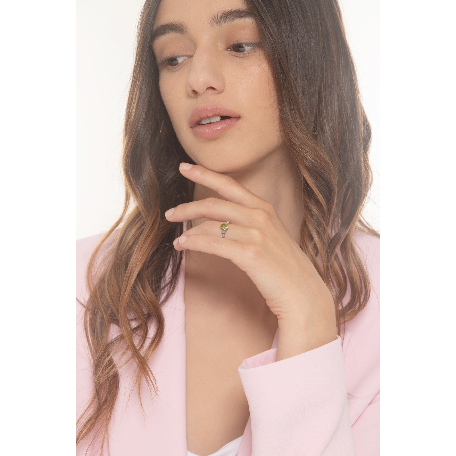 Bague en or blanc 18 carats avec un péridot et 2 diamants