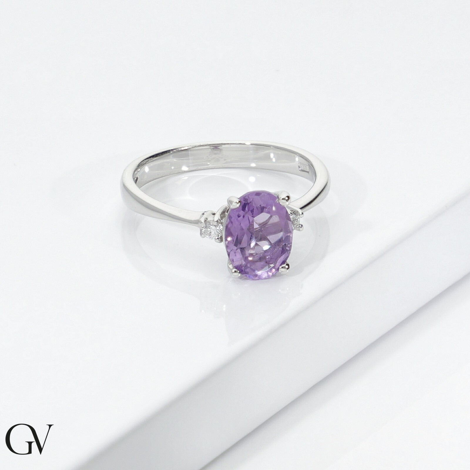 Bague en or blanc 18k avec améthyste centrale et diamants