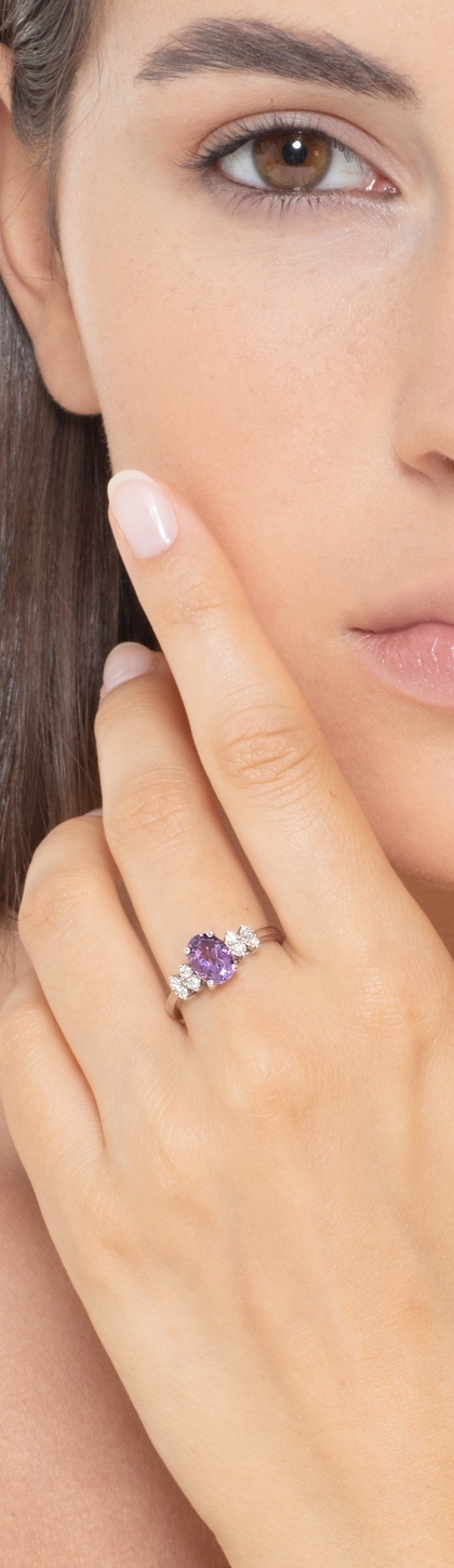 Bague en Or Blanc 18k avec Améthyste Ovale et Diamants