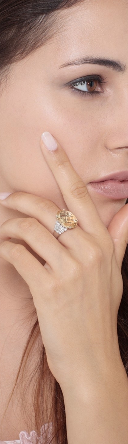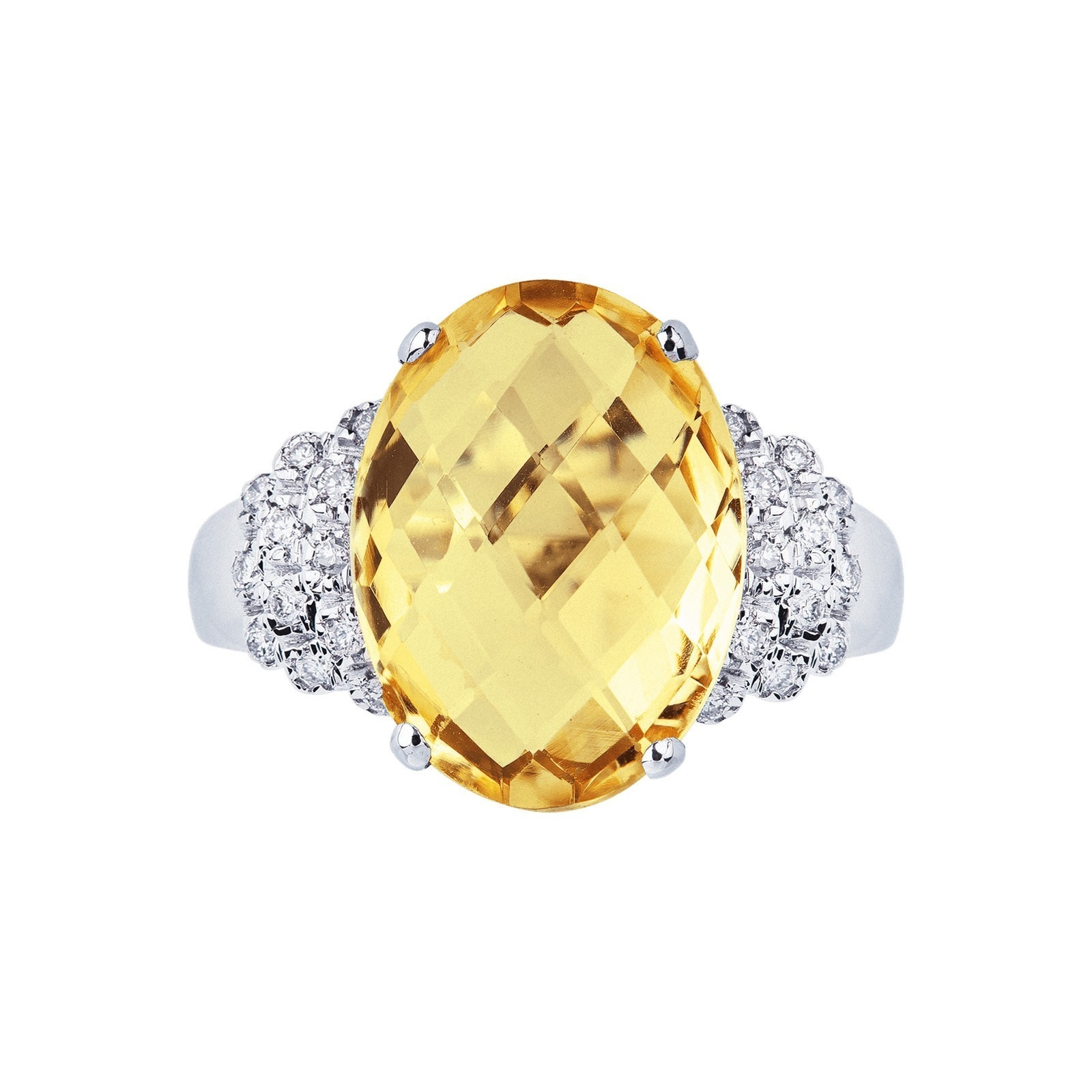 Bague en Or Blanc 18k avec Citrine centrale et diamants