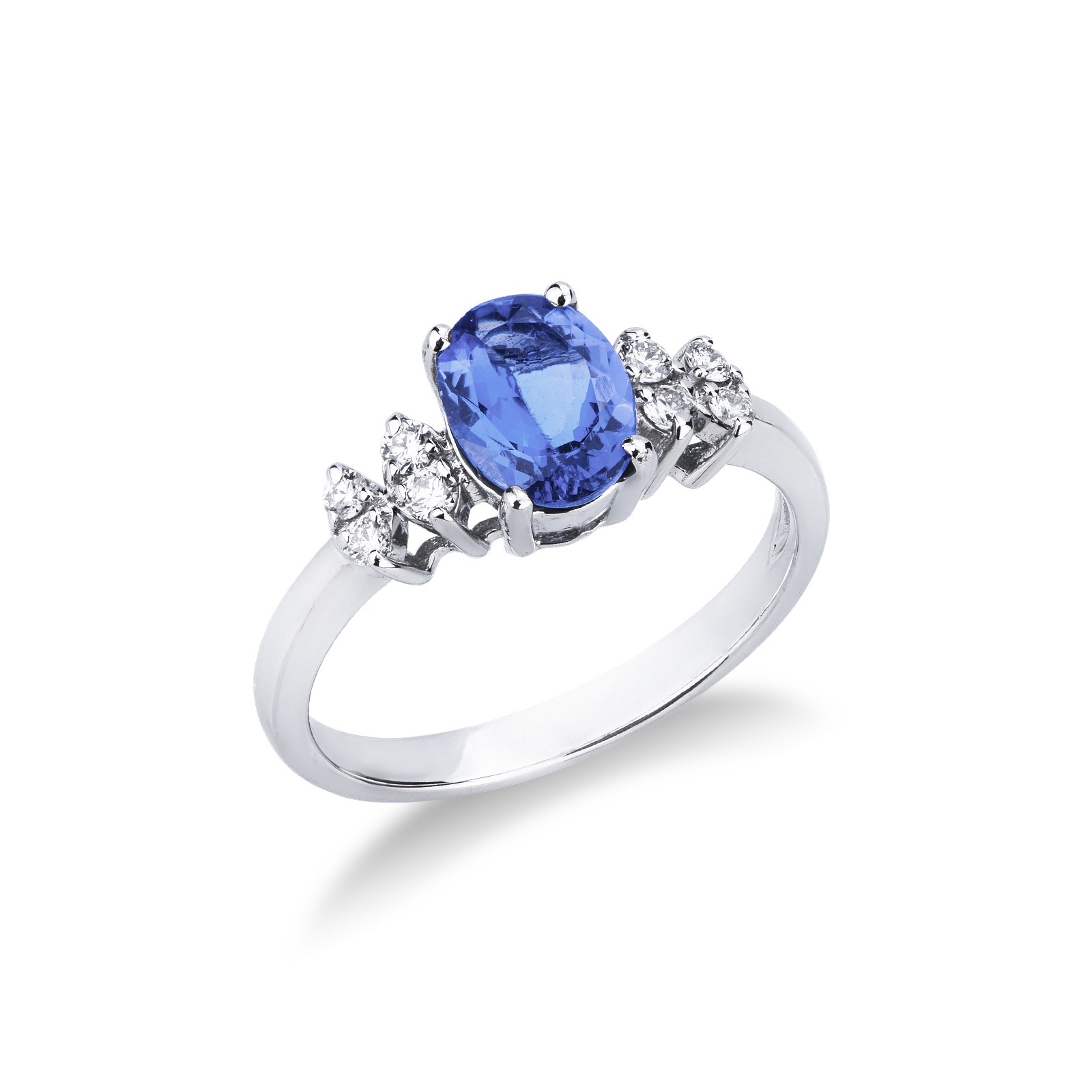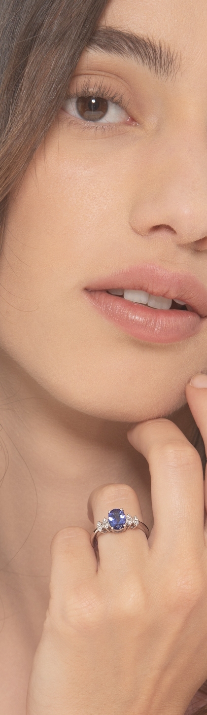 Bague en or blanc 18k avec diamants et tanzanite ovale