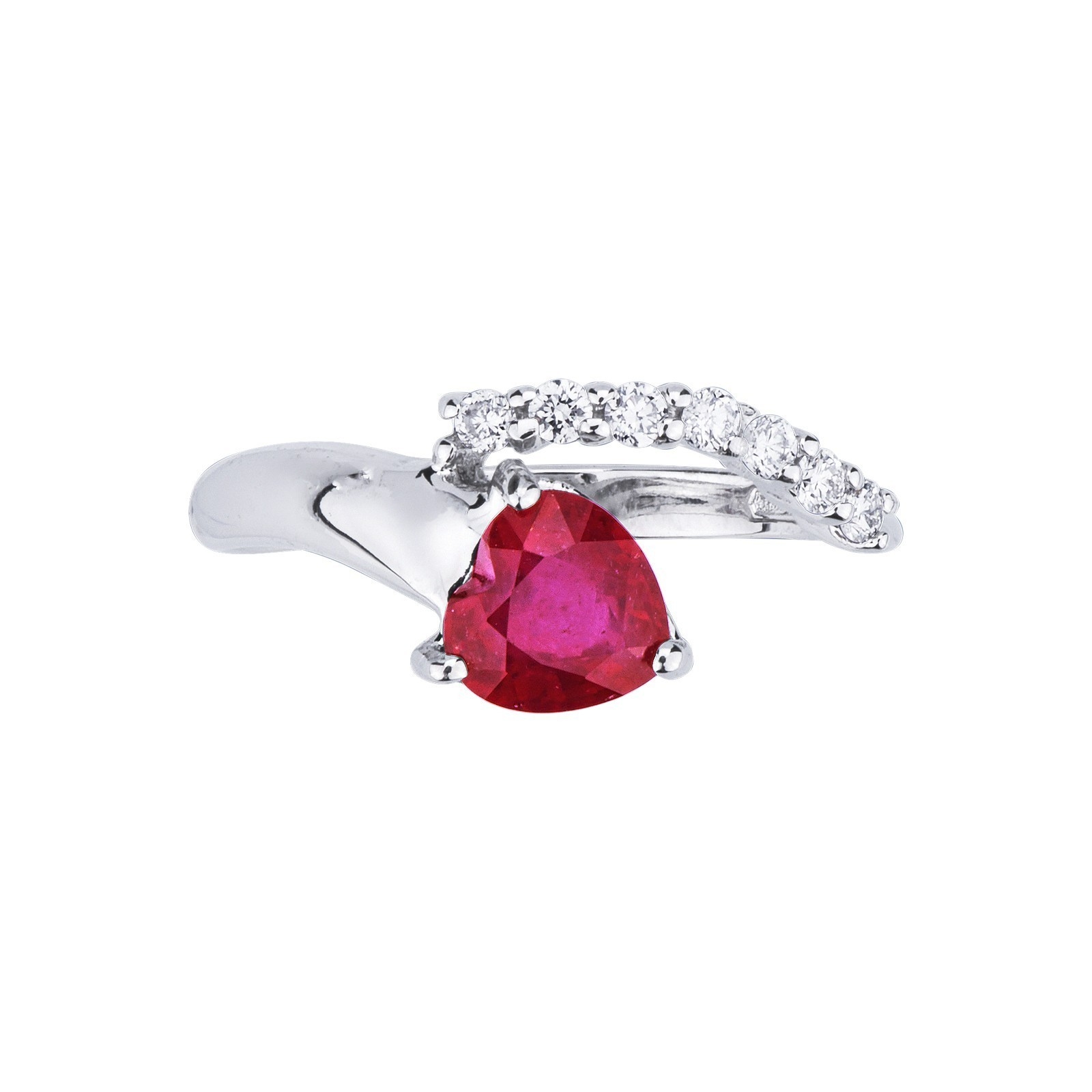 Bague en or blanc 18k avec rubis en forme de cœur et diamants