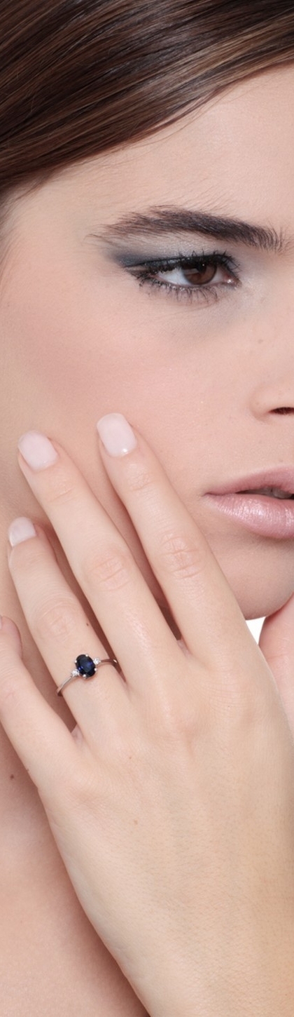 Bague en or blanc 18k avec saphir bleu ovale et diamants