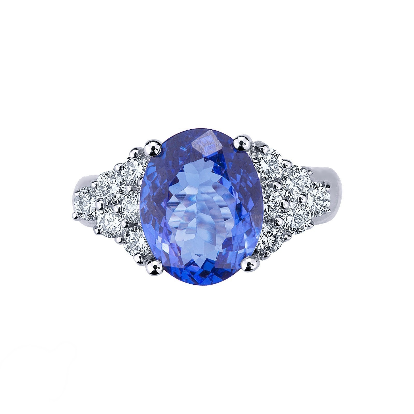 Bague en or blanc 18k avec tanzanite taille ovale et diamants.