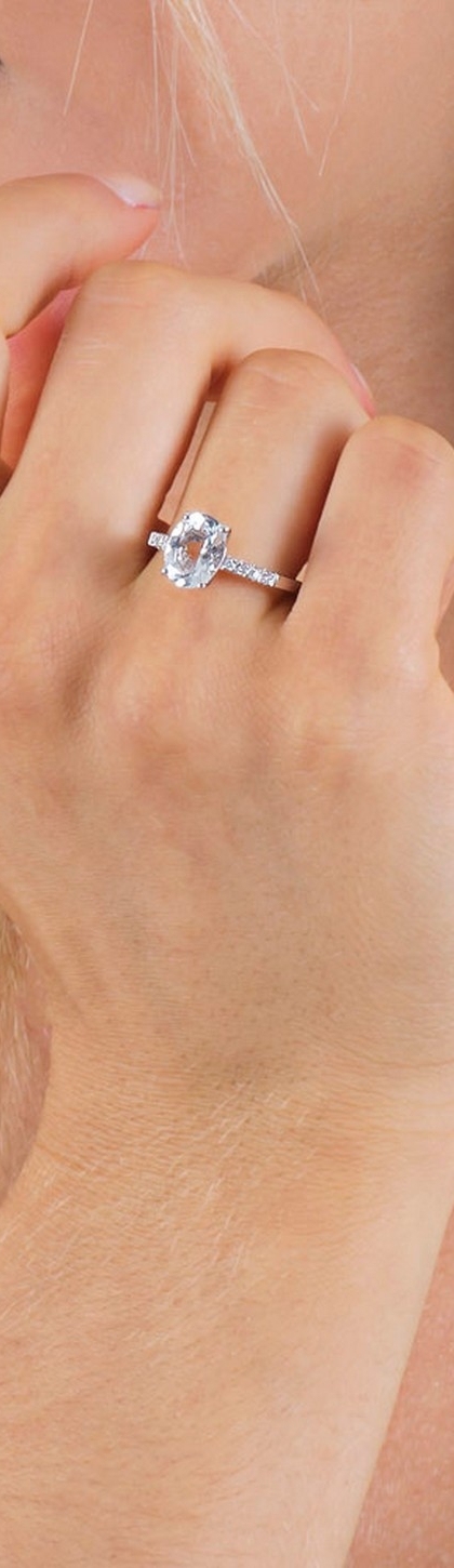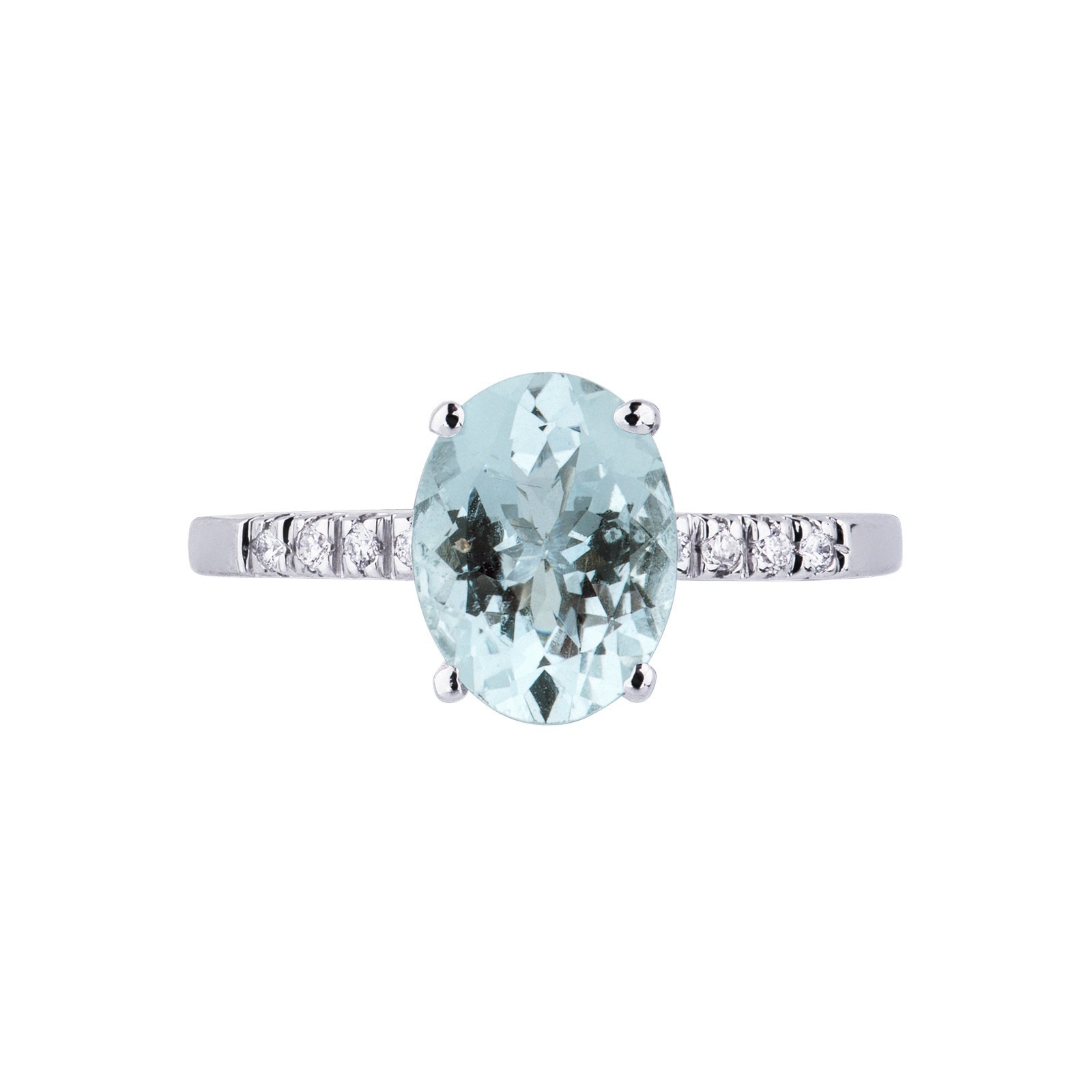 Bague femme or blanc 18k aigue-marine ovale et diamants