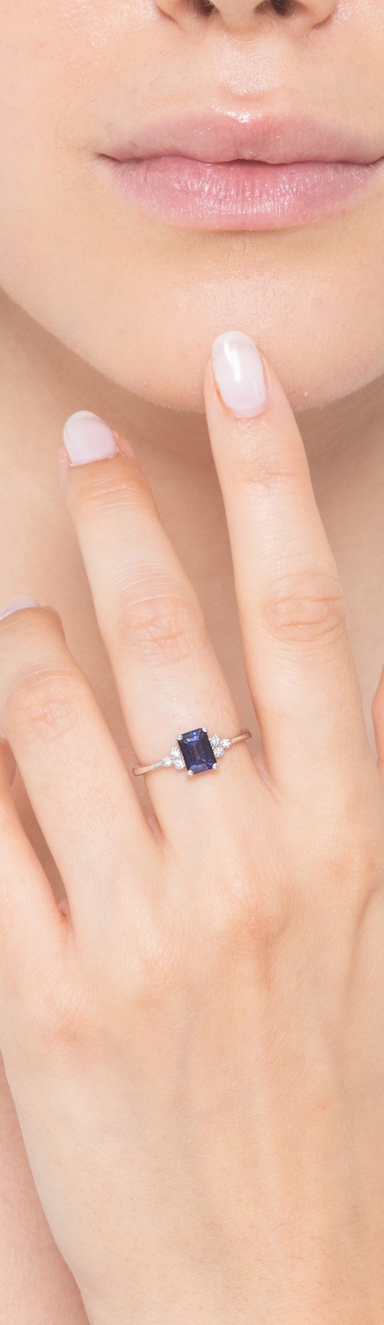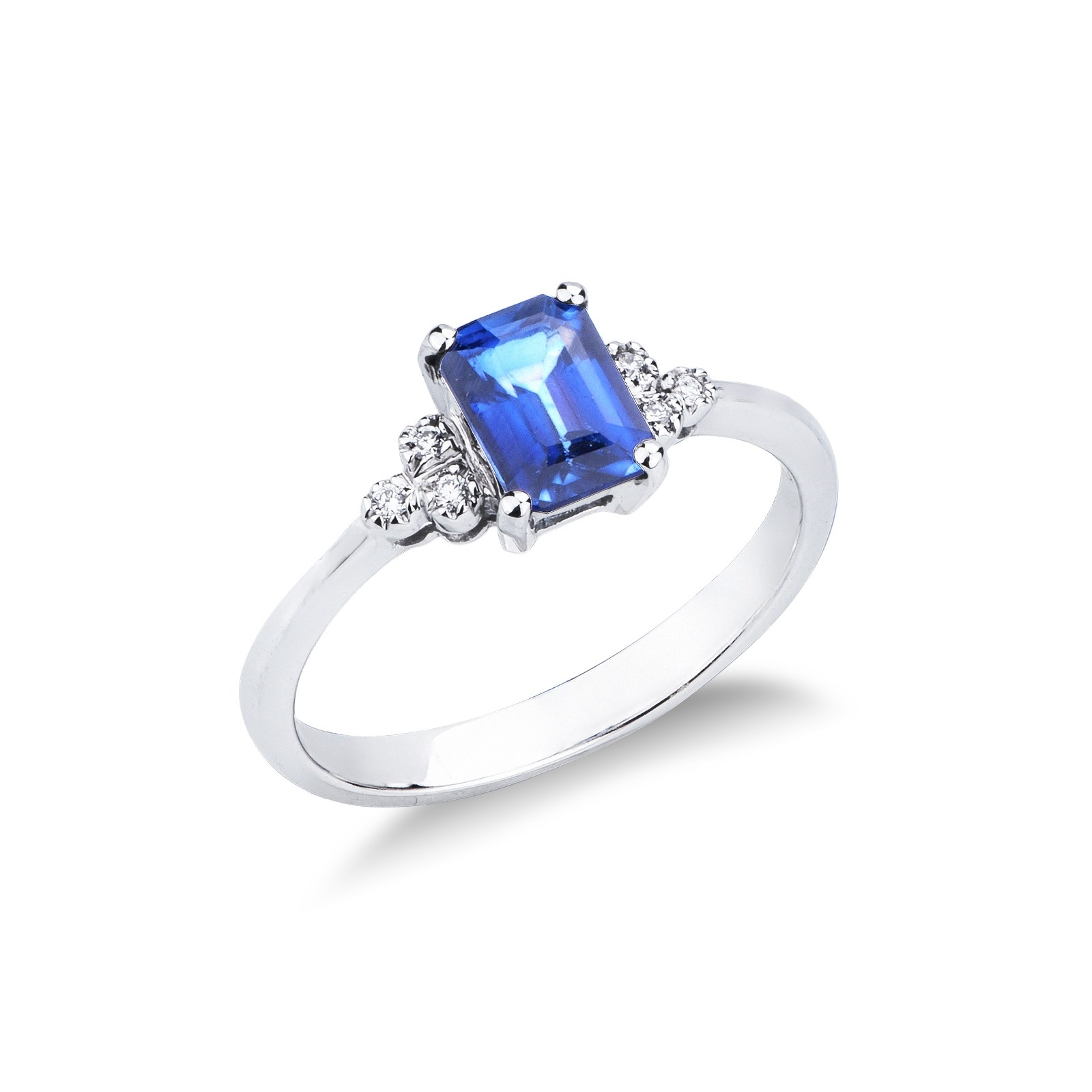 Bague en or blanc 18k avec saphir bleu ovale et diamants