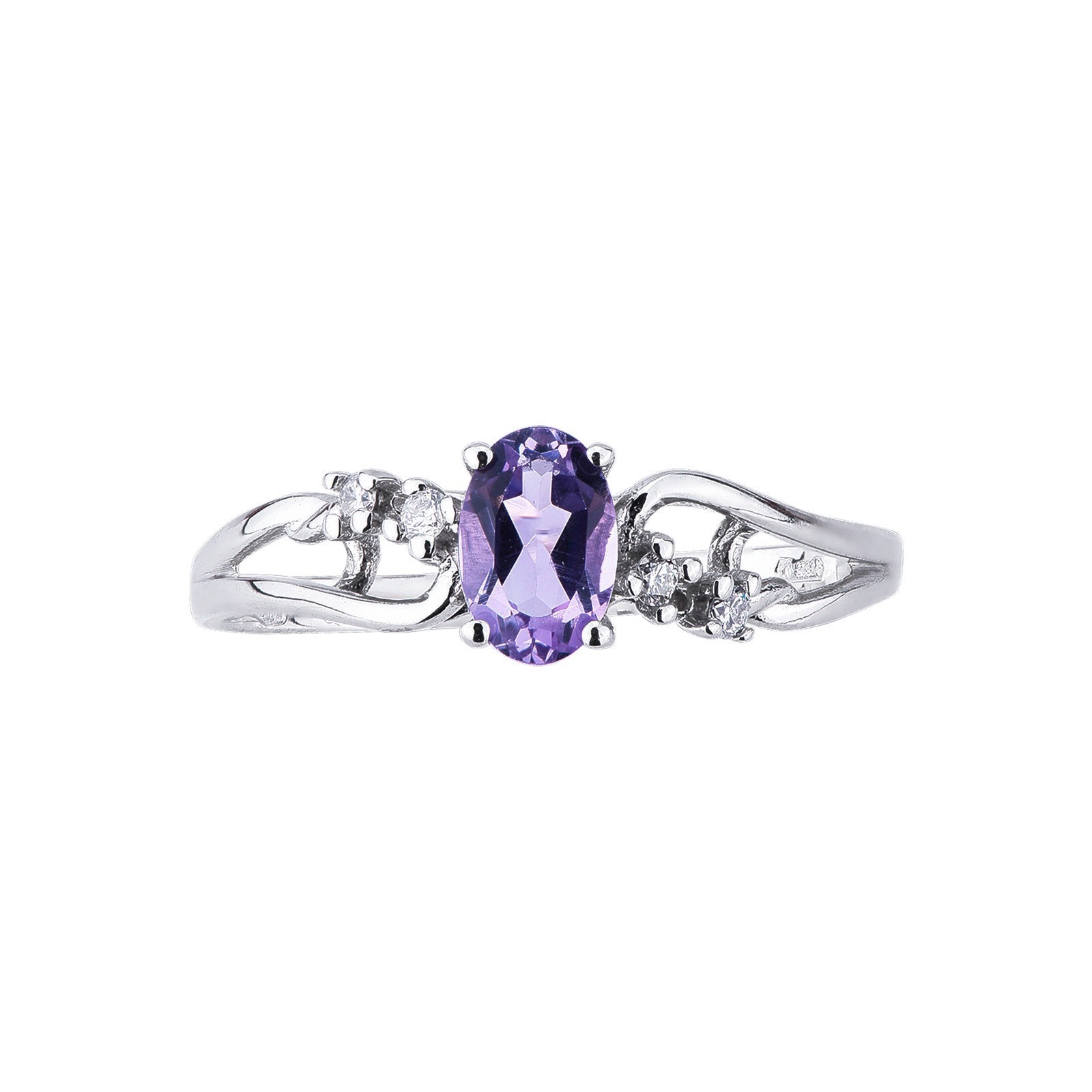 Bague fine en or blanc 18 carats avec améthyste ovale et diamants