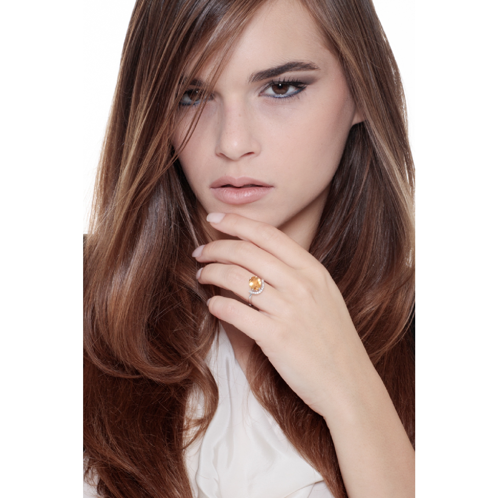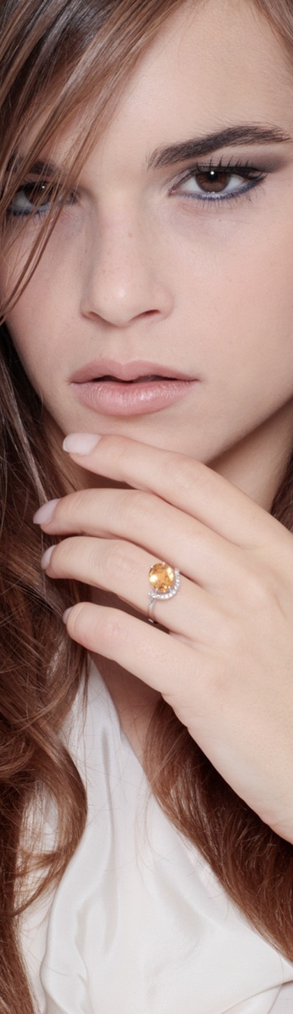 Bague or blanc 18k avec citrine oval et diamants