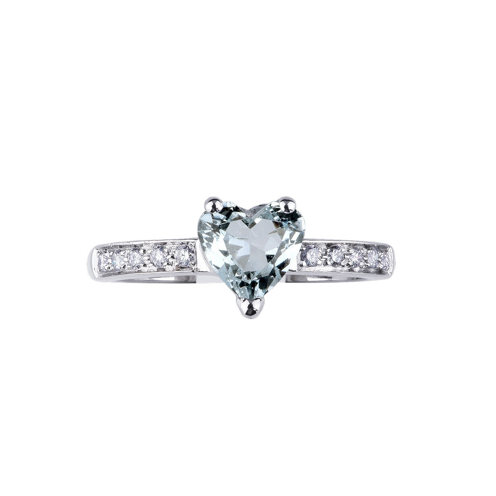 Bague pour femme en or blanc 18k avec aigue-marine cœur et diamants