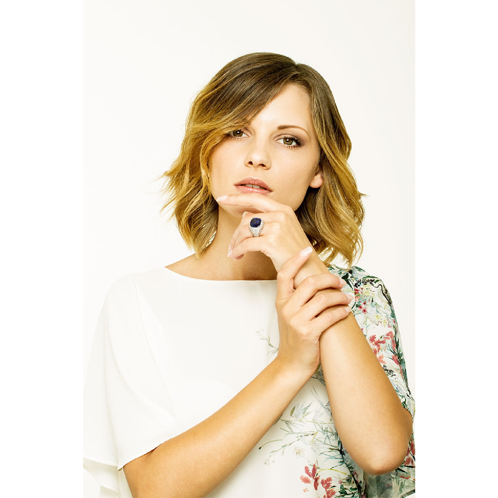 Bague femme or blanc 18k avec saphir bleu ovale et diamants