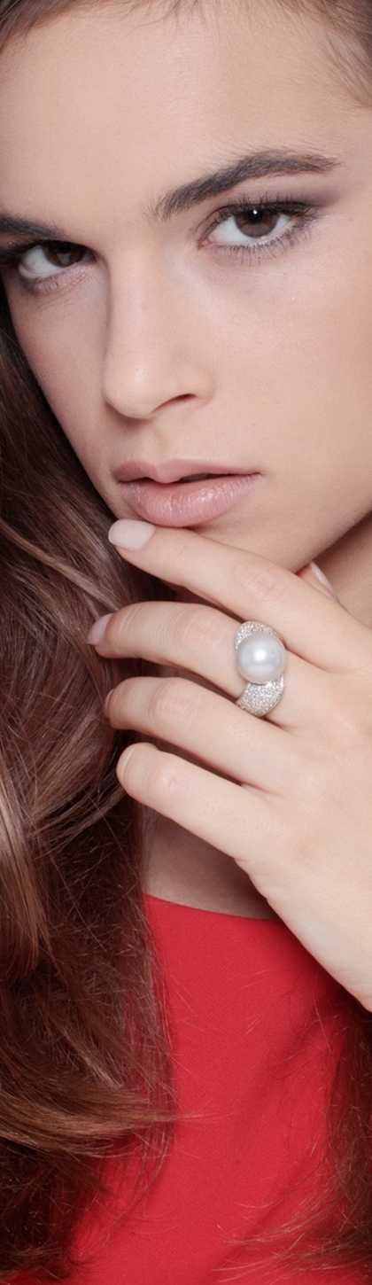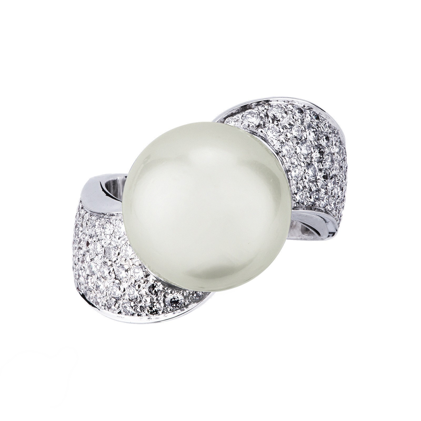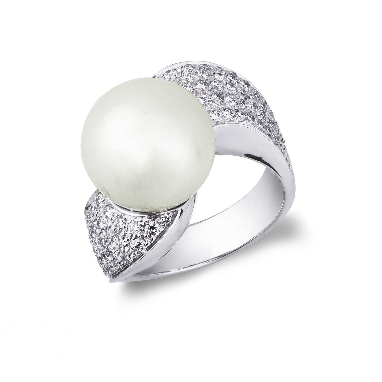 Bague en or blanc 18 ct avec perle et pavage de diamants