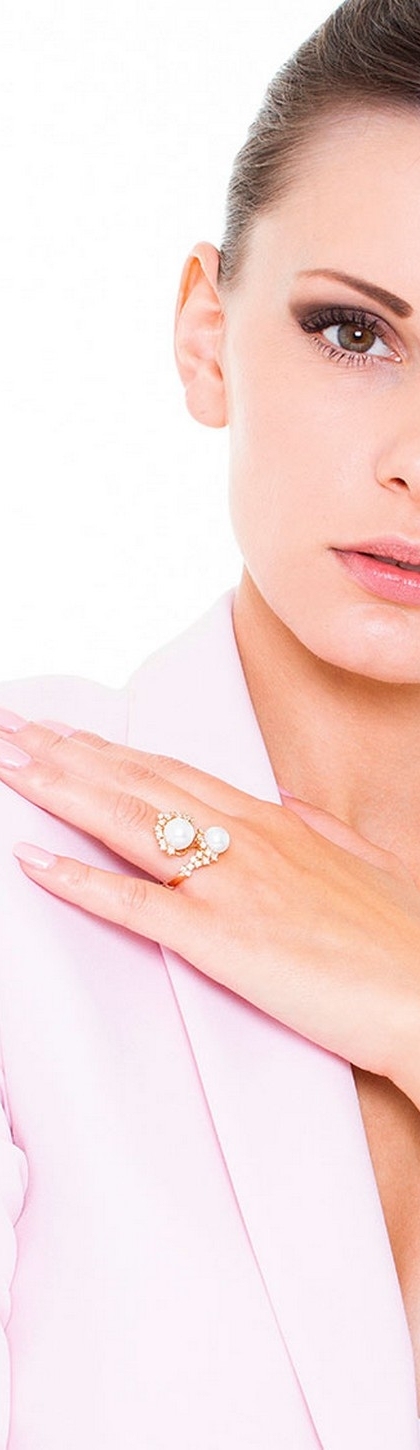 Bague toi et moi en or rose 18k avec perles et diamants
