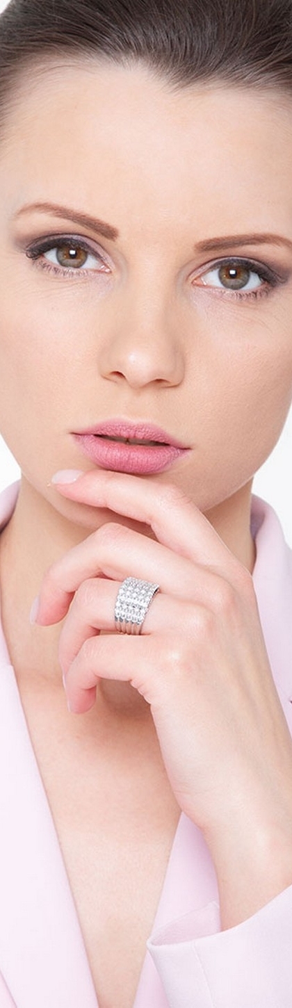 Bague à 5 rangées en or blanc 18k avec des diamants