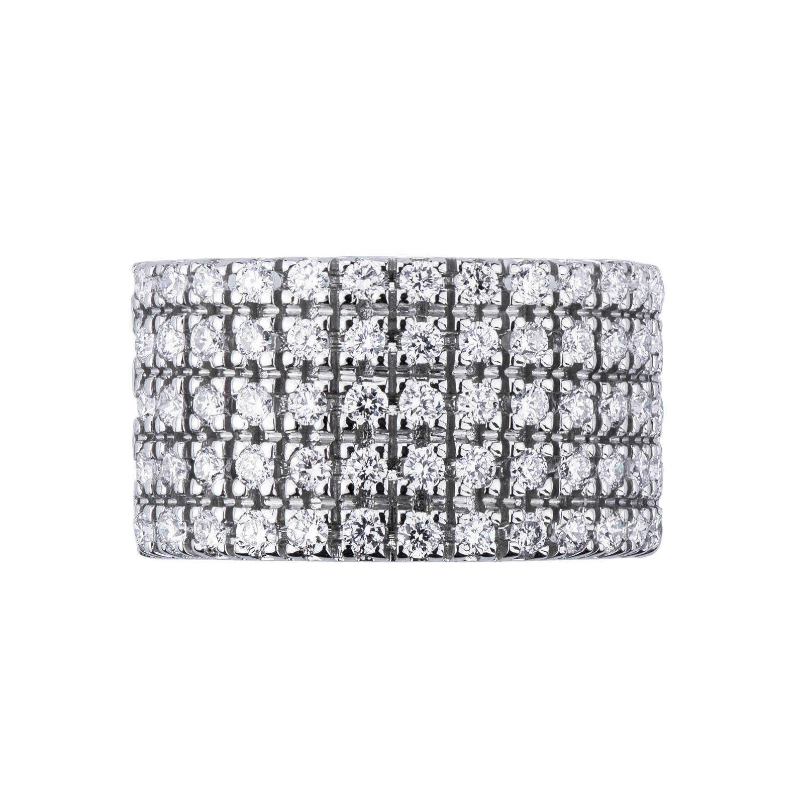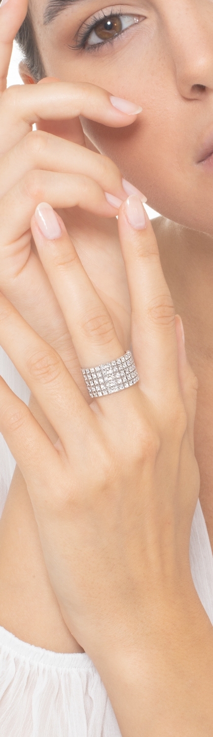 Bague bande en or blanc 18 carats avec 5 rangées de 13 diamants