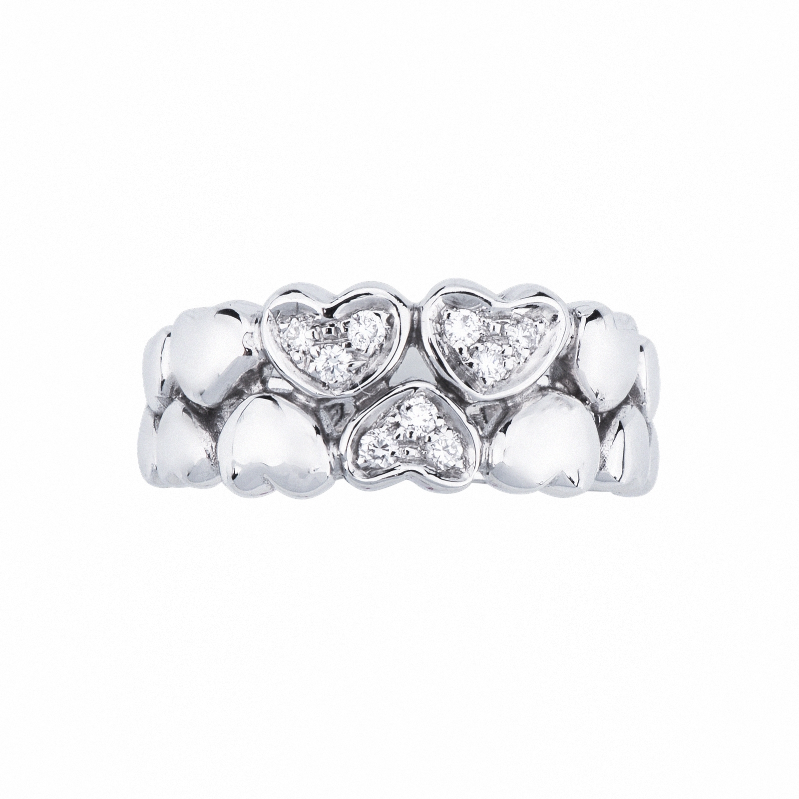 Bague Bande en Or Blanc 18 Carats avec Cœurs en Diamants