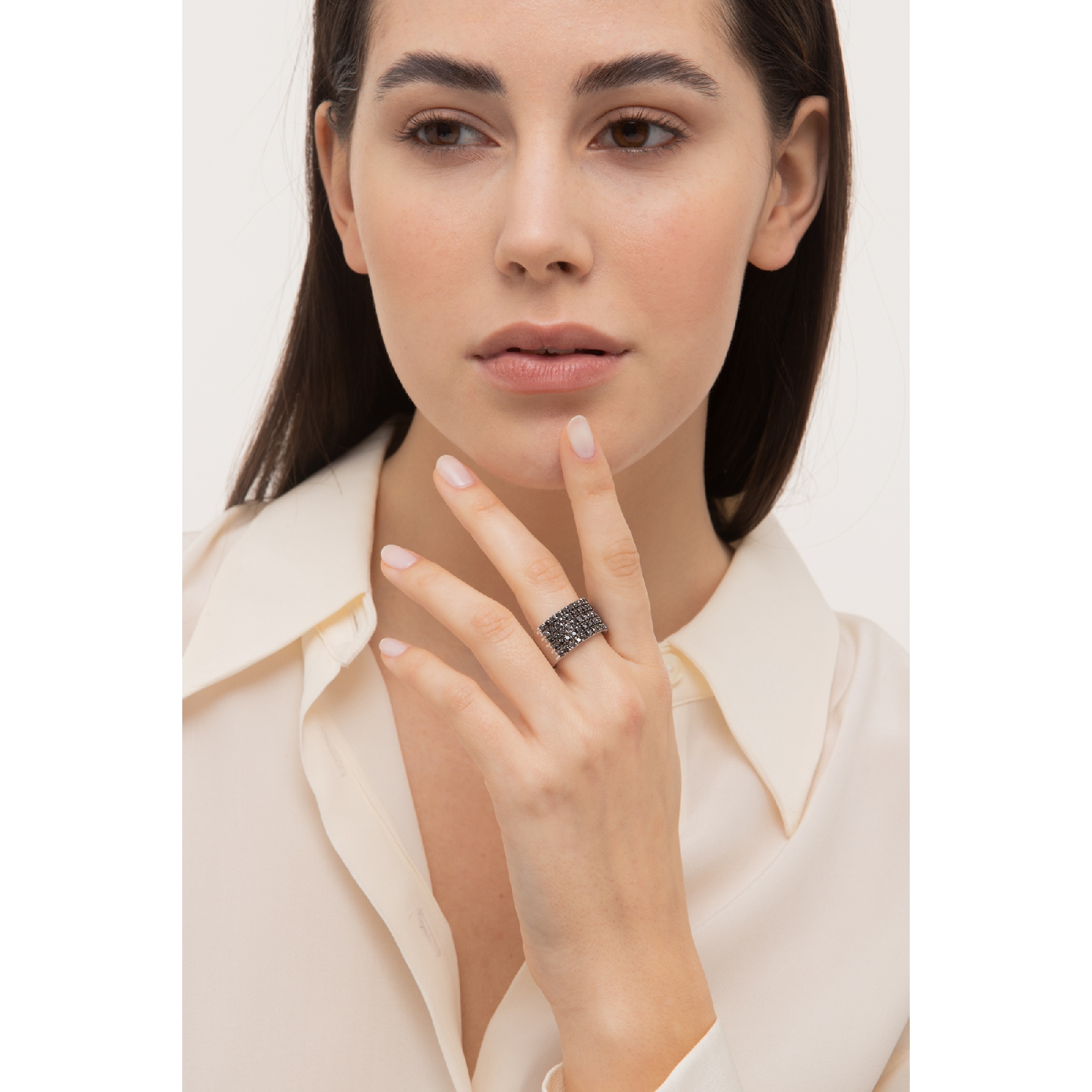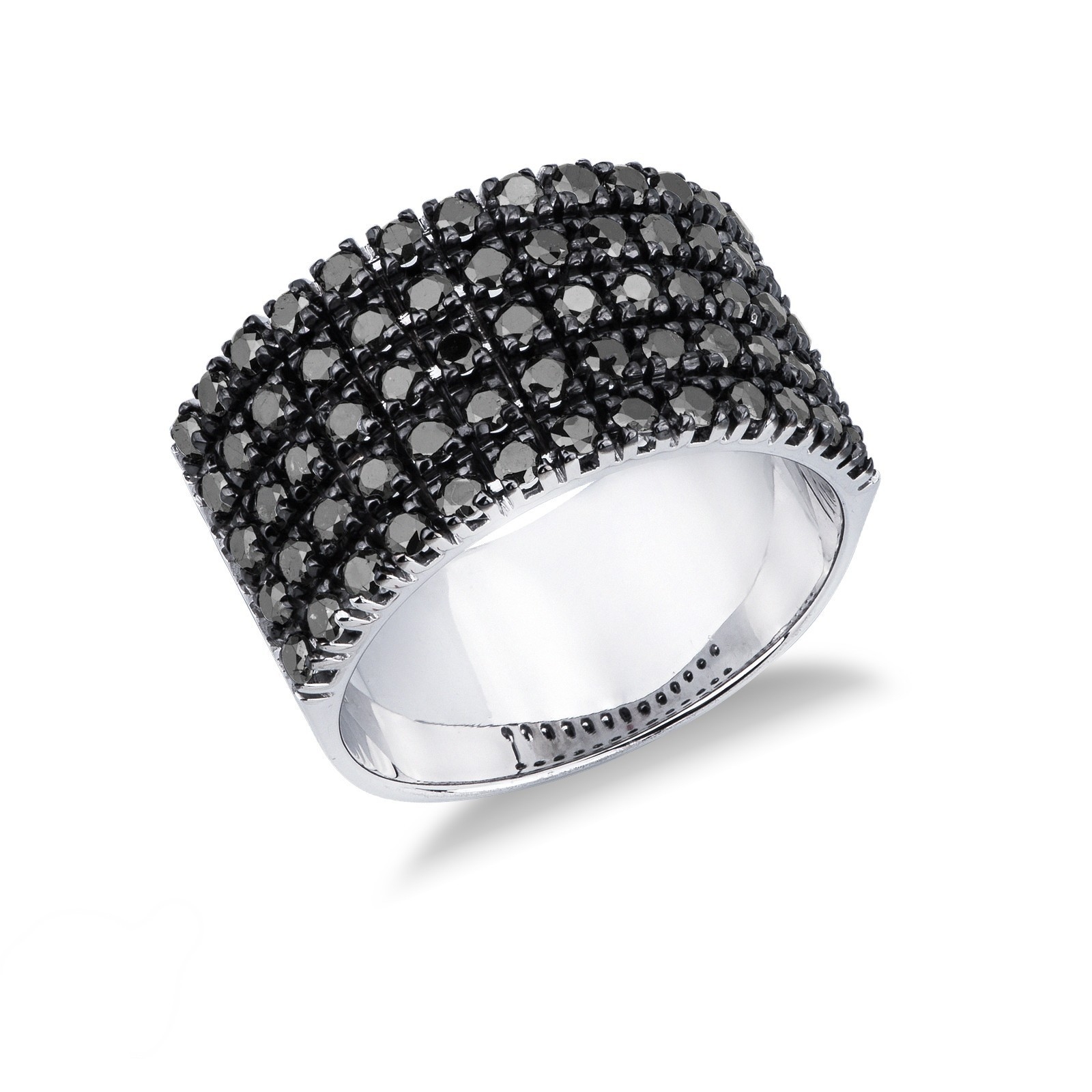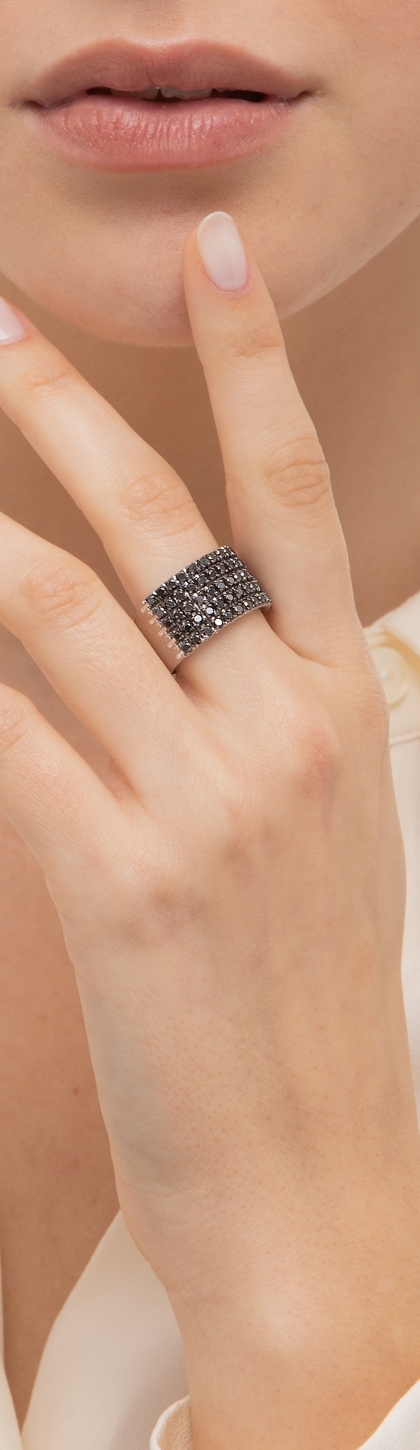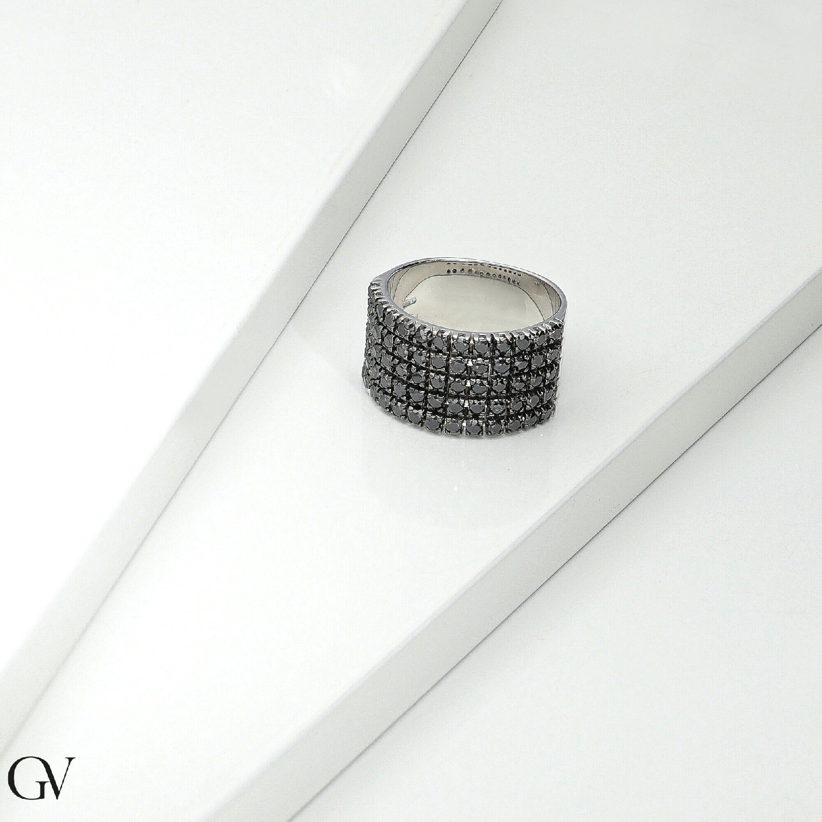 Bague bande en or blanc 18k avec diamants noirs