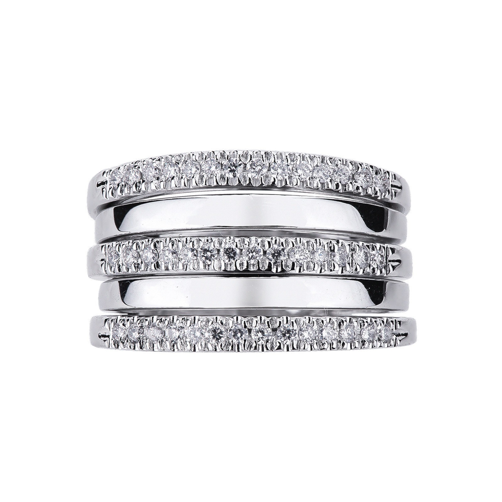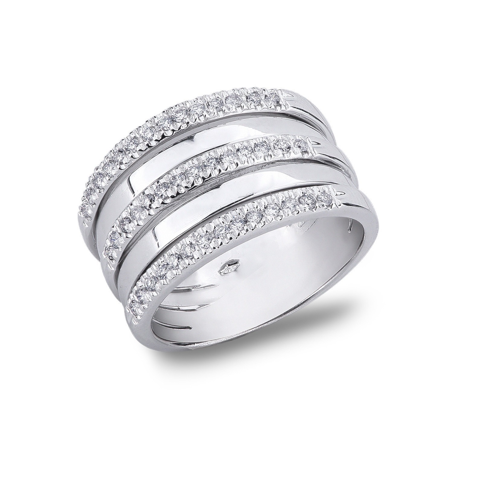 Bague bande en or blanc 18k avec trois rangées de diamants